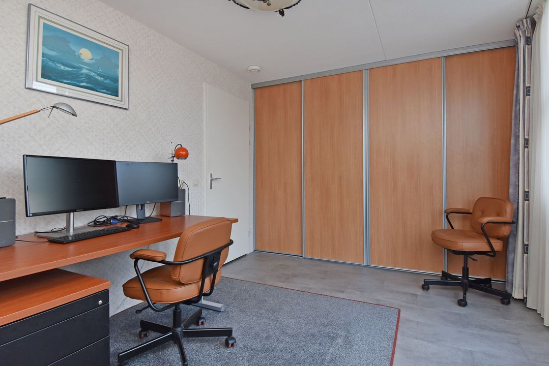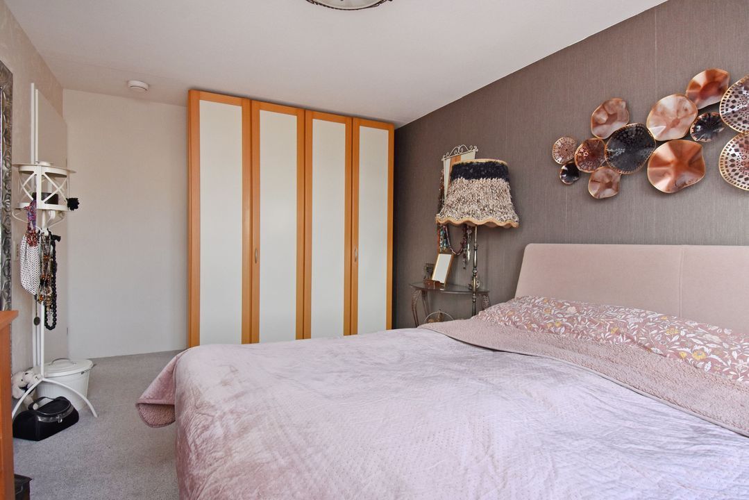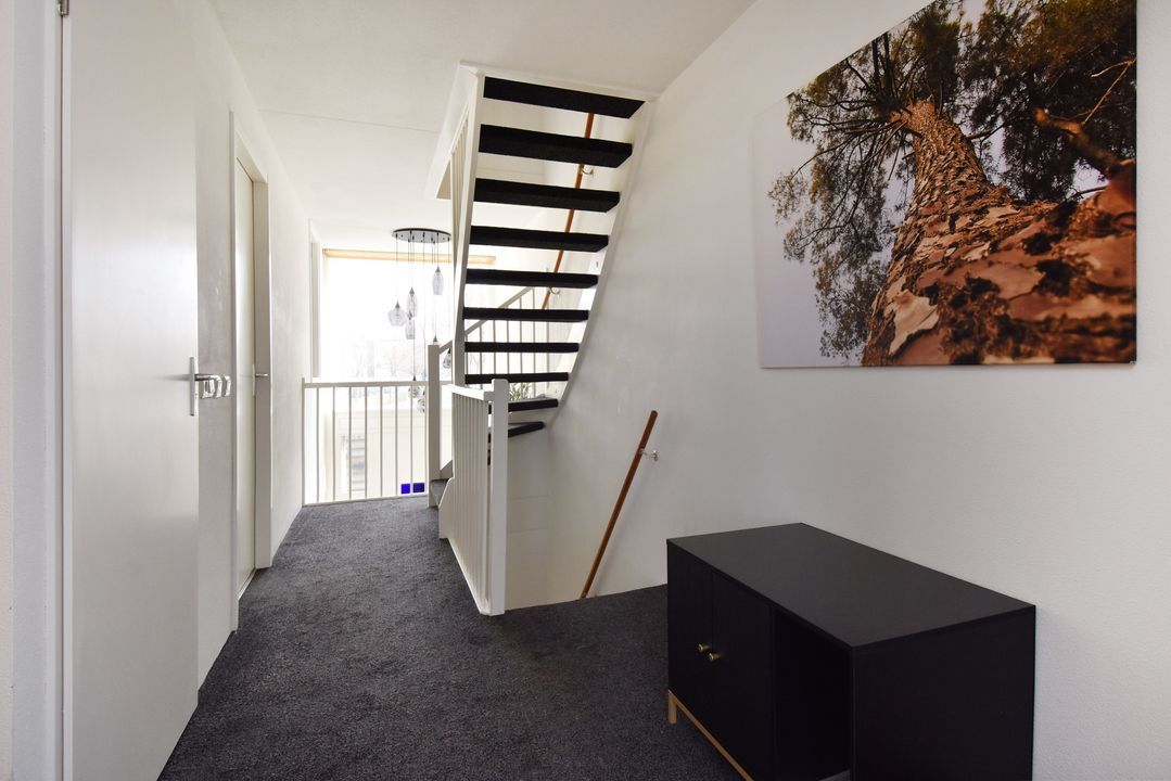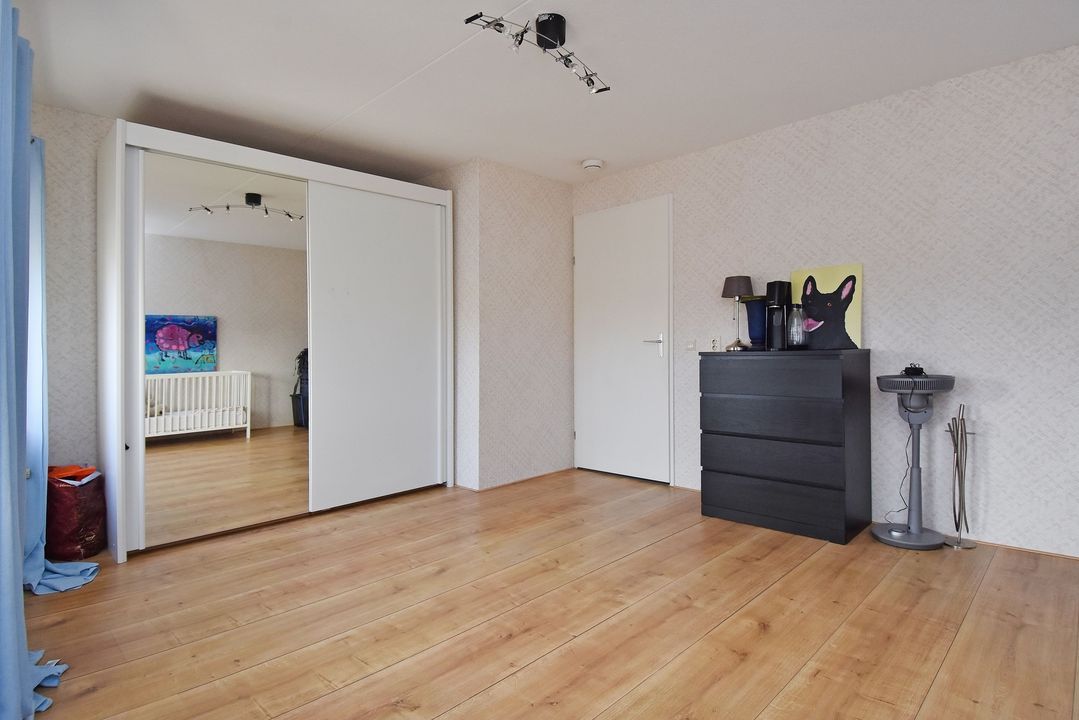 Overloop met vloerbedekking. Ruime achterslaapkamer met laminaatvloer, vaste garderobekast en vrij uitzicht. Op eenvoudige wijze kan deze kamer opgesplitst worden in twee aparte kamers. Inpandige berging met opstelplaats voor CV-Combiketel (Intergas Xtreme 2019), wasmachine, droger en warmte terugwin unit (Itho Daalderop 2019). Slaapkamer 4 met laminaatvloer.