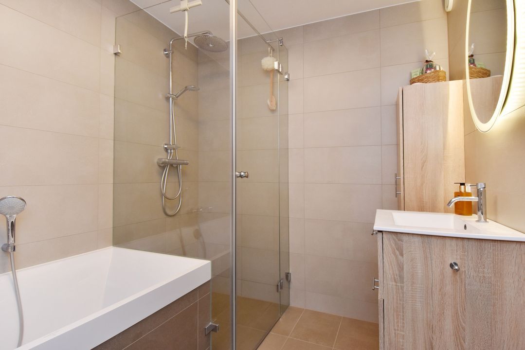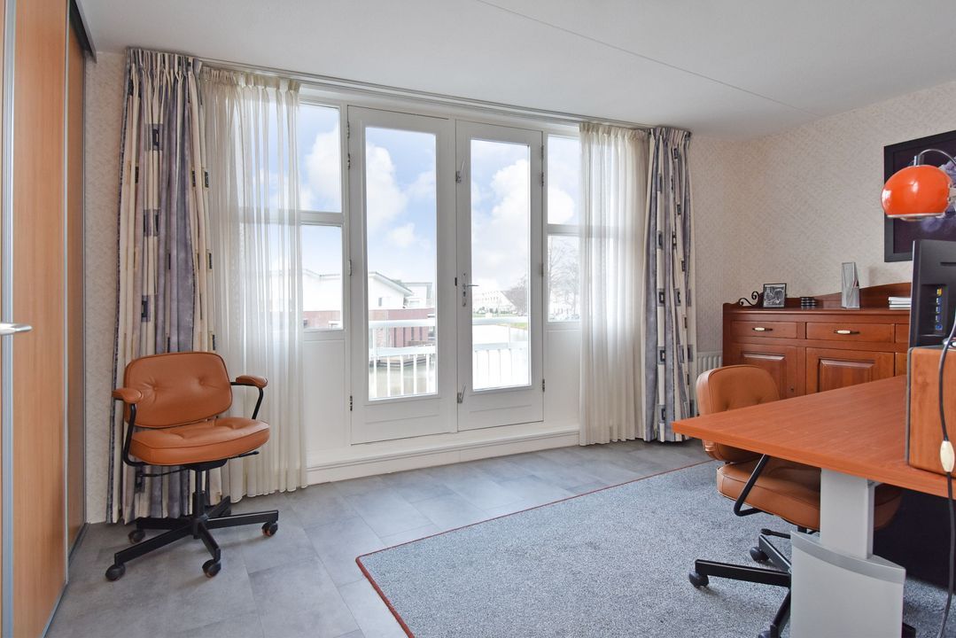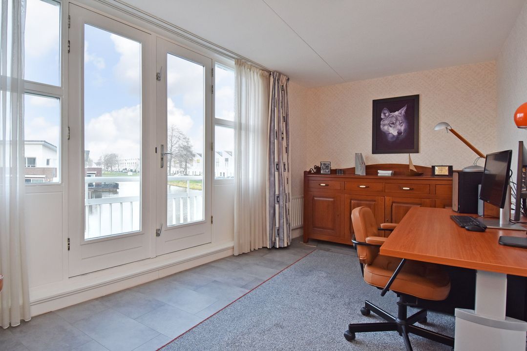Overloop met vide en trapopgang. Separate toiletruimte met zwevend toilet en fonteintje. Ruime achterslaapkamer met laminaatvloer, vaste kast, twee openslaande deuren, Frans balkon en prachtig vrij uitzicht over de waterpartij. Moderne, volledig betegelde badkamer (2023) voorzien van ligbad met thermostaatkraan, handdoekradiator, badkamermeubel met wastafel, inloopdouche met easydrain, hand- en stortdouche, thermostaatkraan en glazen wand. Ruime voorslaapkamer met vloerbedekking.