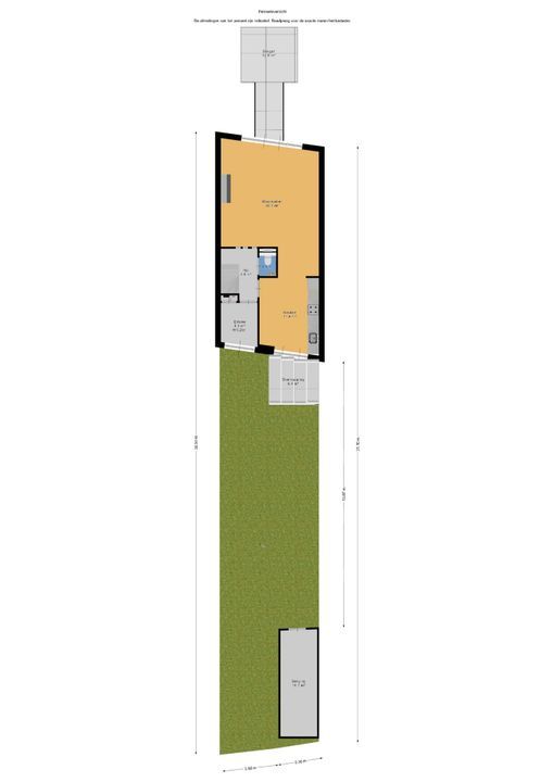 - De voortuin ligt op het zuidoosten, heeft een diepte van bijna 20 meter en is daarom heel zonnig gelegen