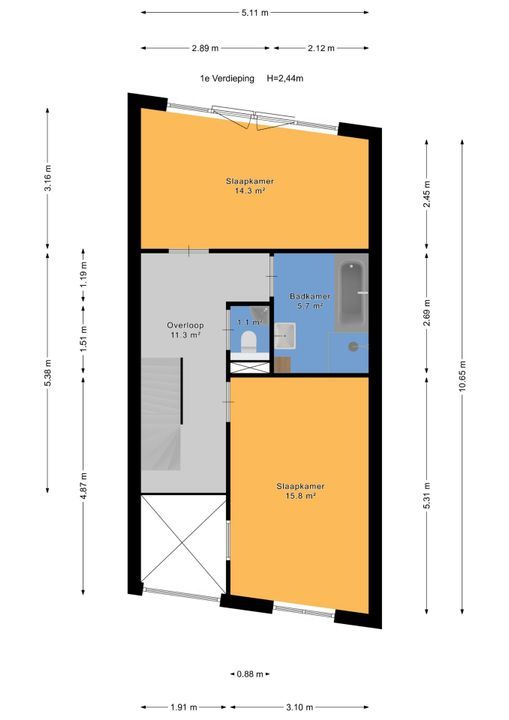 - Op eenvoudige wijze is op de tweede verdieping een extra kamer en/of badkamer te realiseren