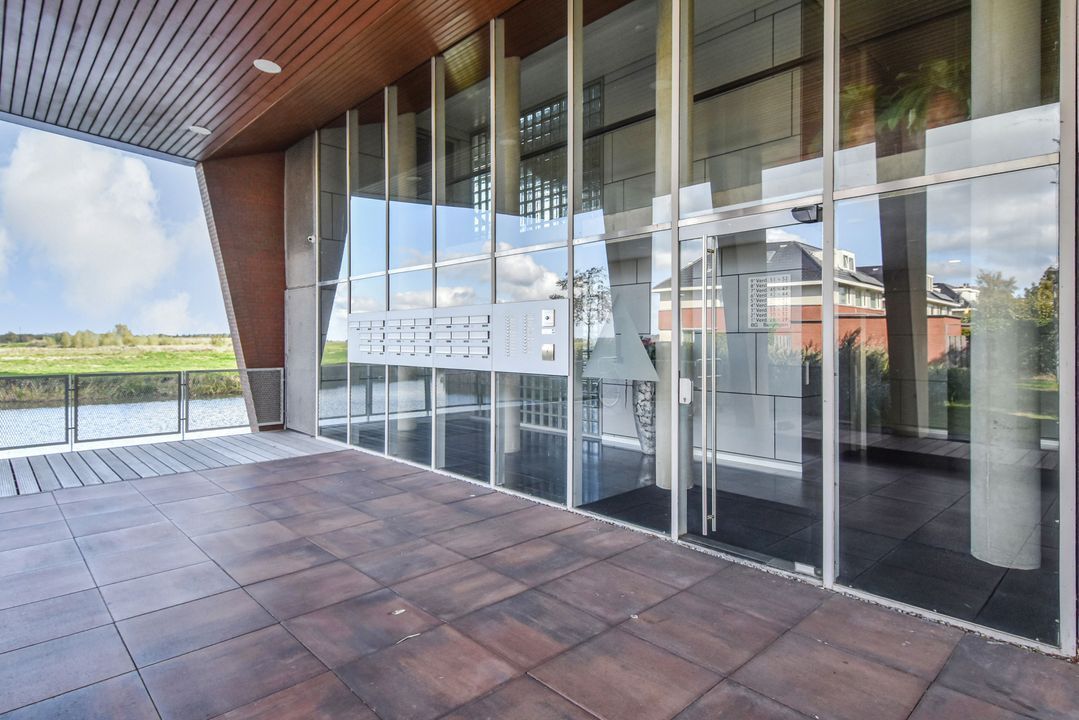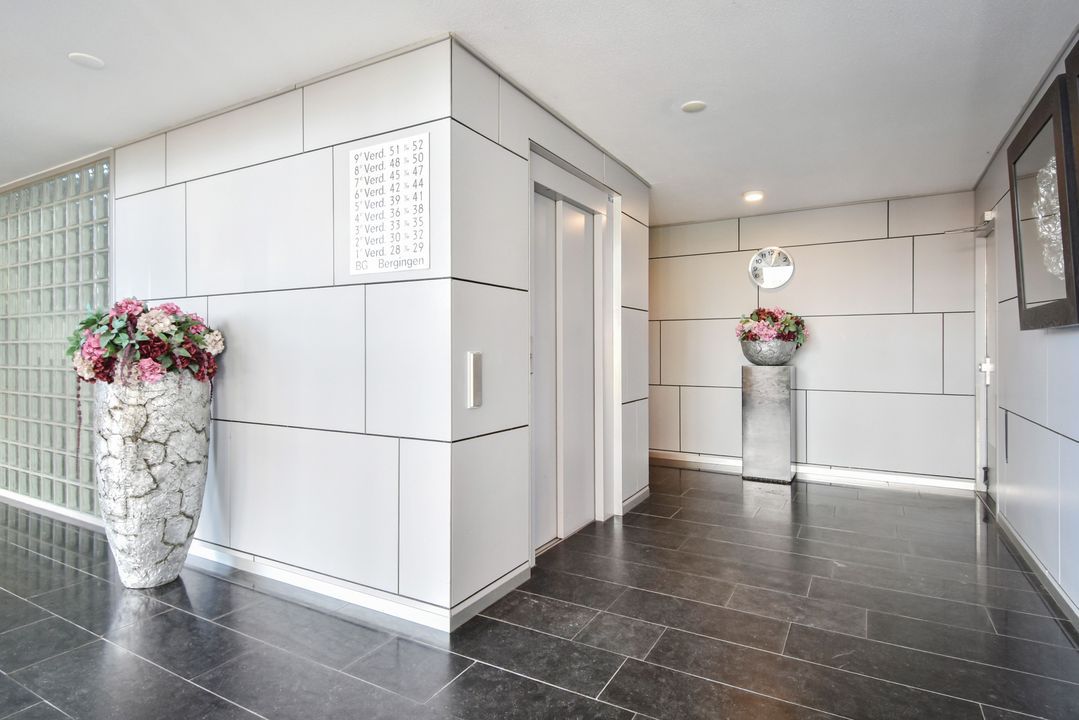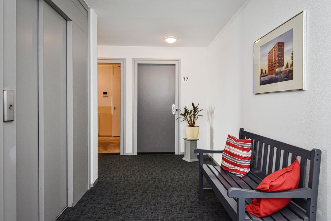Hoofdentree met bellenplateau, videofoon en brievenbussen. Via de afgesloten ingang komt in de centrale hal met lift en trappenhuis naar de verdiepingen.