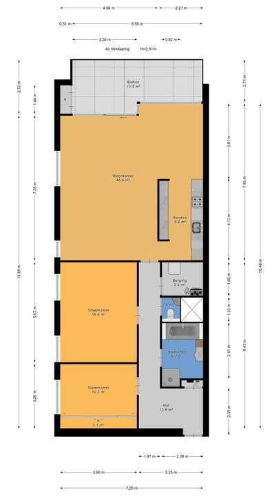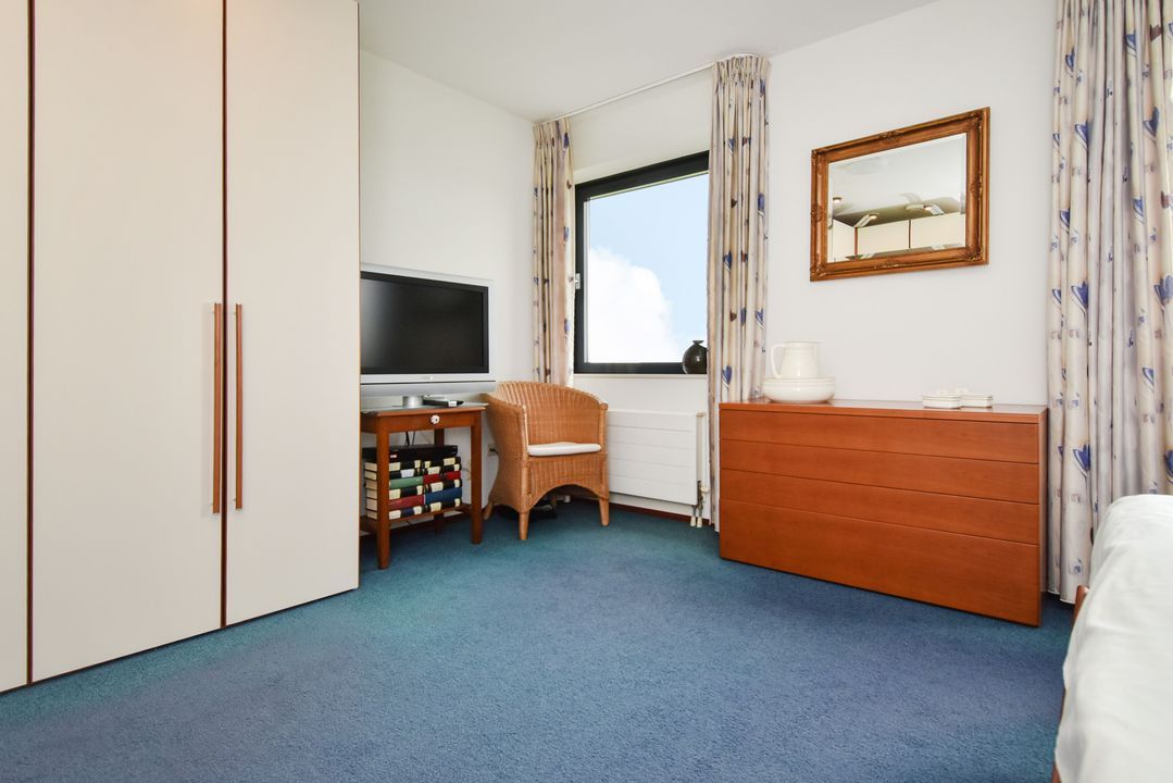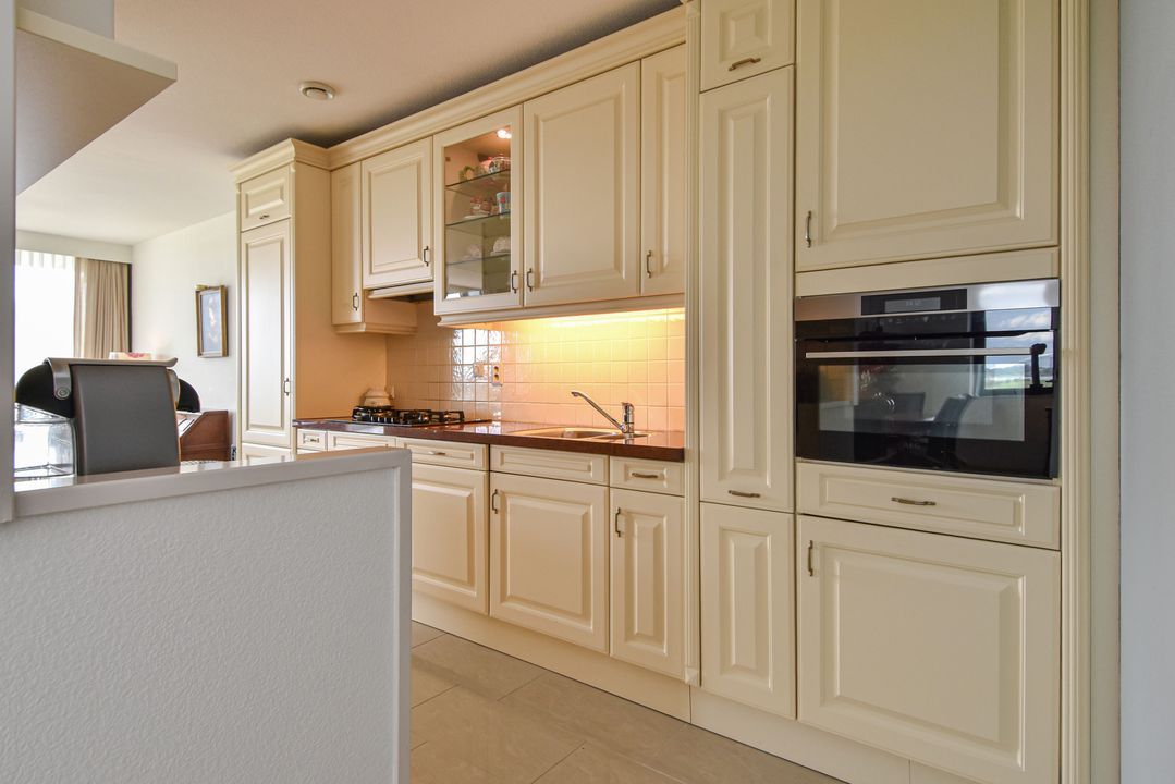 Entree appartement met gang, meterkast, garderobe en videofoon. Volledig betegelde toiletruimte voorzien van zwevend toilet en fonteintje. Twee ruime slaapkamers van resp. 12m2 en 20m2, beide met vrij uitzicht richting recreatiegebied en één met vaste garderobekast. Volledig betegelde badkamer voorzien van douchecabine met mengkraan, ligbad met mengkraan, badkamermeubel met wastafel en spiegel en een handdoekradiator. Inpandige beging met opstelplaats voor CV-Combiketel (Nefit 2016), wasmachine, droger en warmte terugwin unit (Agpo HR Optifor). Riante living van circa 46m2 met veel lichtinval, vrij uitzicht naar recreatiegebied en schuifpui naar zonnig balkon op het zuidzuidoosten. Half open keuken voorzien van diverse inbouwapparatuur, te weten: 1 1/2 spoelbak, vaatwasser, combi oven-/magnetron, koelkast met vriesvak, 4-pits gas-op-glas kookplaat, vlakscherm afzuigschouw en apothekerskast.