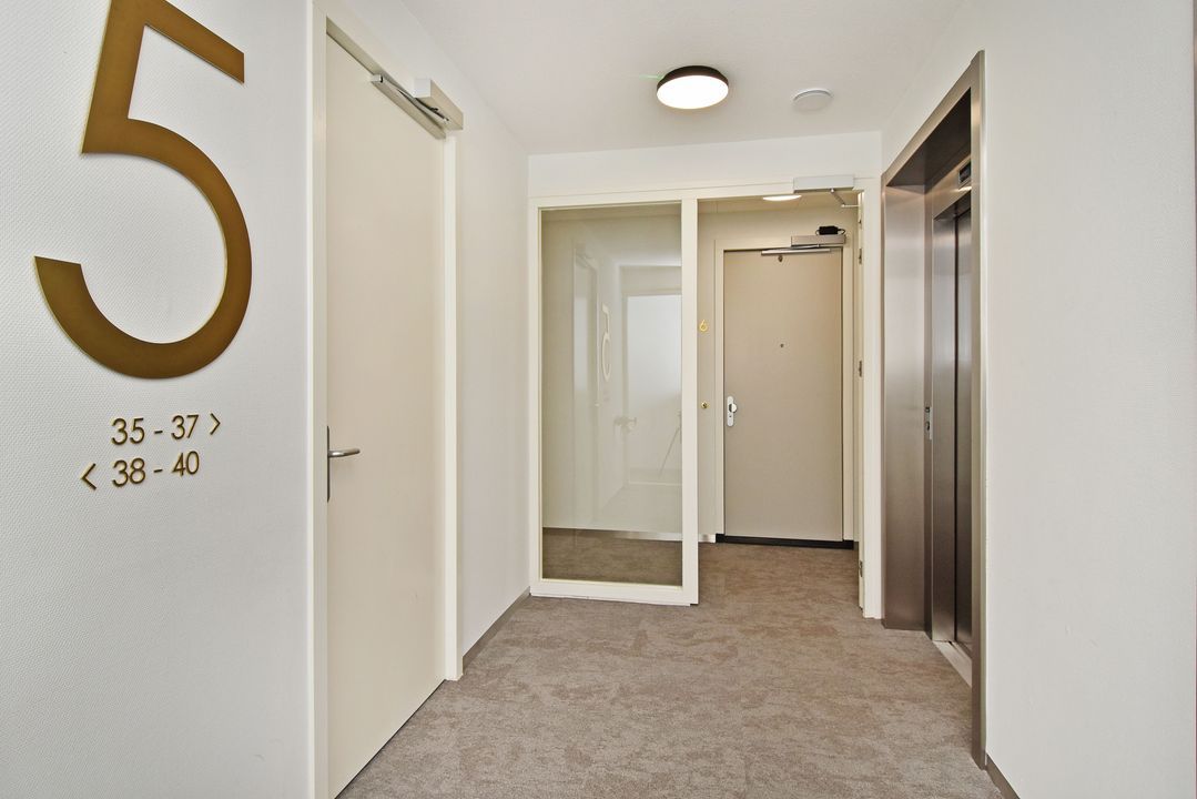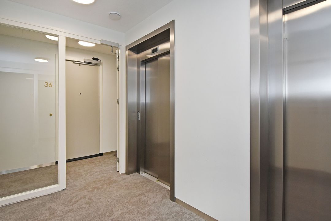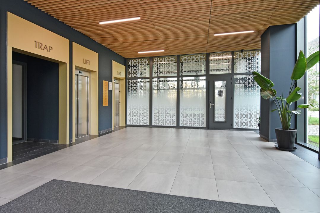 Afgesloten entree met brievenbussen, bellenplateau en videofooninstallatie. Centrale hal met trappenhuis en lift naar de verdiepingen.