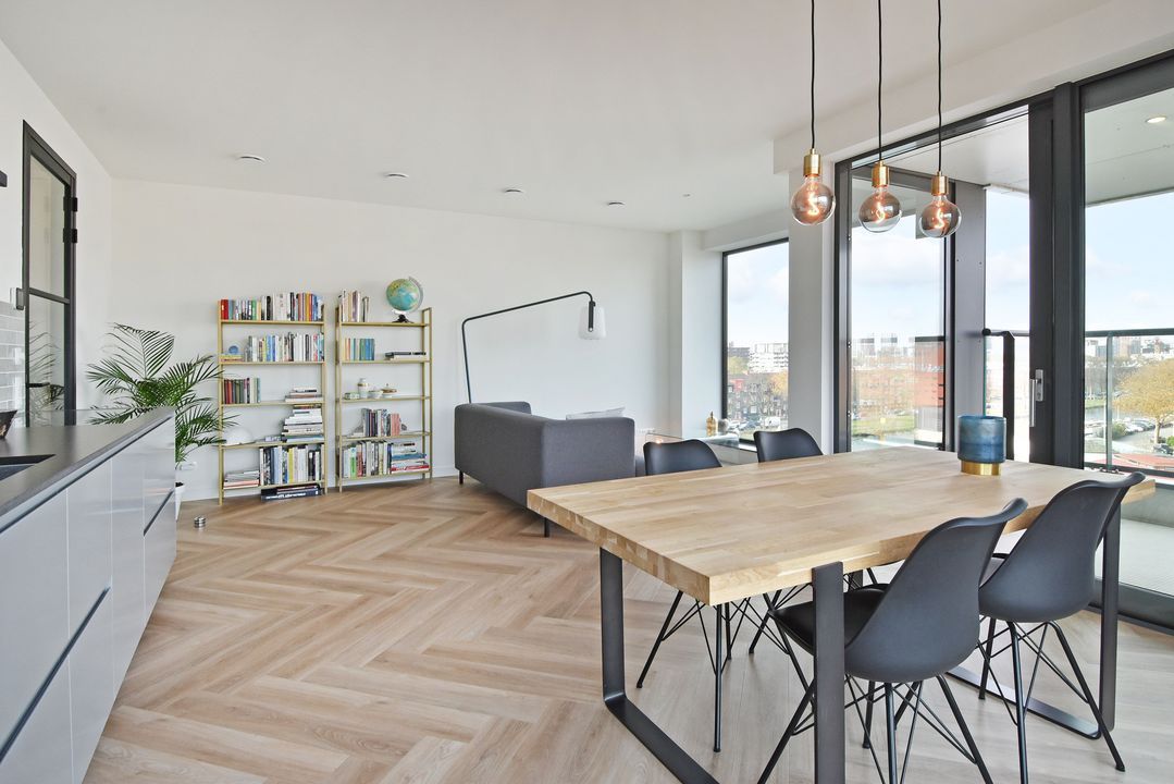 This modern two-room apartment is located on the fifth floor of a small-scale apartment complex and offers the ultimate in living comfort. This sustainable apartment with an A+++ energy label offers everything you need to relax and enjoy yourself right away. With a living area of approximately 65m² in a good location on the ‘Binckhorst’, this is a unique opportunity to live in style and comfort. The apartment is very quiet, truly an oasis of peace. Enjoy the sunny terrace with unobstructed views over the water.
