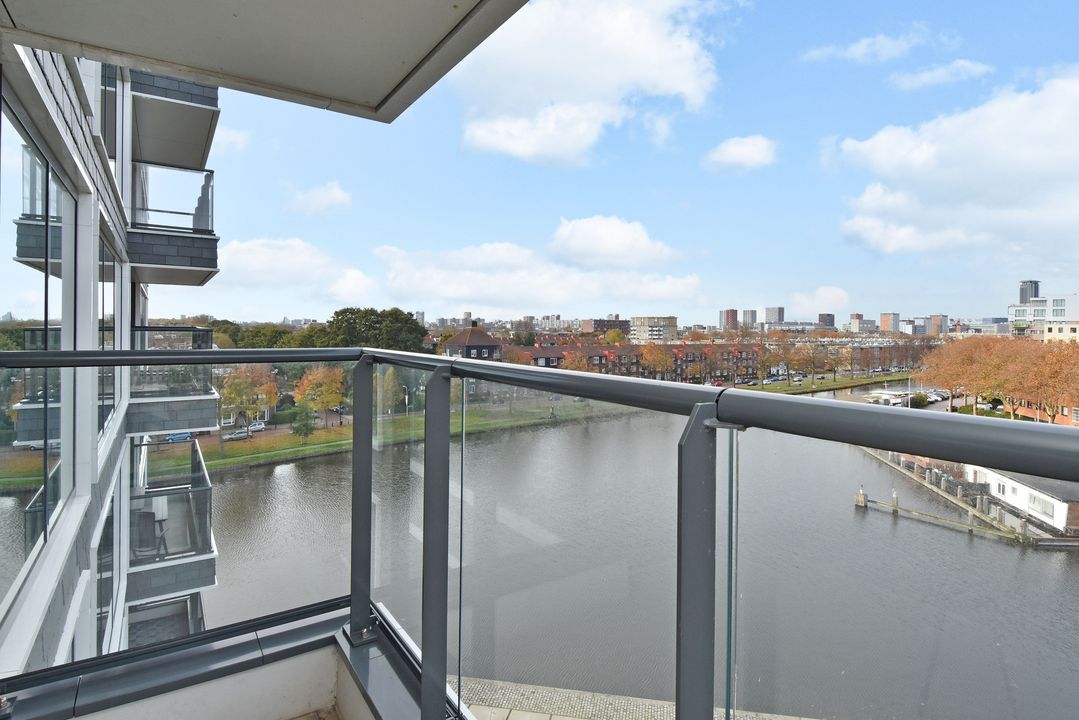 Entree woning, ruime hal met fraaie walvisgraat pvc vloer doorlopend in de gehele woning en meterkast. Moderne, volledig betegelde toiletruimte met zwevend toilet en hoekfonteintje. Inpandige berging/wasruimte met opstelplaats voor warmte terugwin unit, wasmachine, droger en Itho Daalderop warmte pomp met Itho Daalderop boiler. Lichte woonkamer met grote raampartijen, vrij uitzicht over water en richting de skyline en centrum van Den Haag. Via een schuifpui krijg je toegang tot het zonnige balkon op het noordwesten. De op maat gemaakte keuken is uitgevoerd met een composiet aanrechtblad en inbouwapparatuur, te weten: spoelbak, Quooker, combi oven-/magnetron, vaatwasser, koelkast met twee vriesladen (Liebherr) en een 90cm brede inductie kooklaat met ingebouwde afzuigsysteem (NOVY). Lichte slaapkamer met grote ramen en vaste - op maat gemaakte - garderobekast. Via een schuifdeur kom je in de volledig betegelde badkamer voorzien van inloopdouche met easydrain, inbouwnisje, thermostaatkraan en hand- en regendouche, badkamermeubel met twee laden, waskom en hoge kraan en natuurstenen blad en een elektrische verwarming.