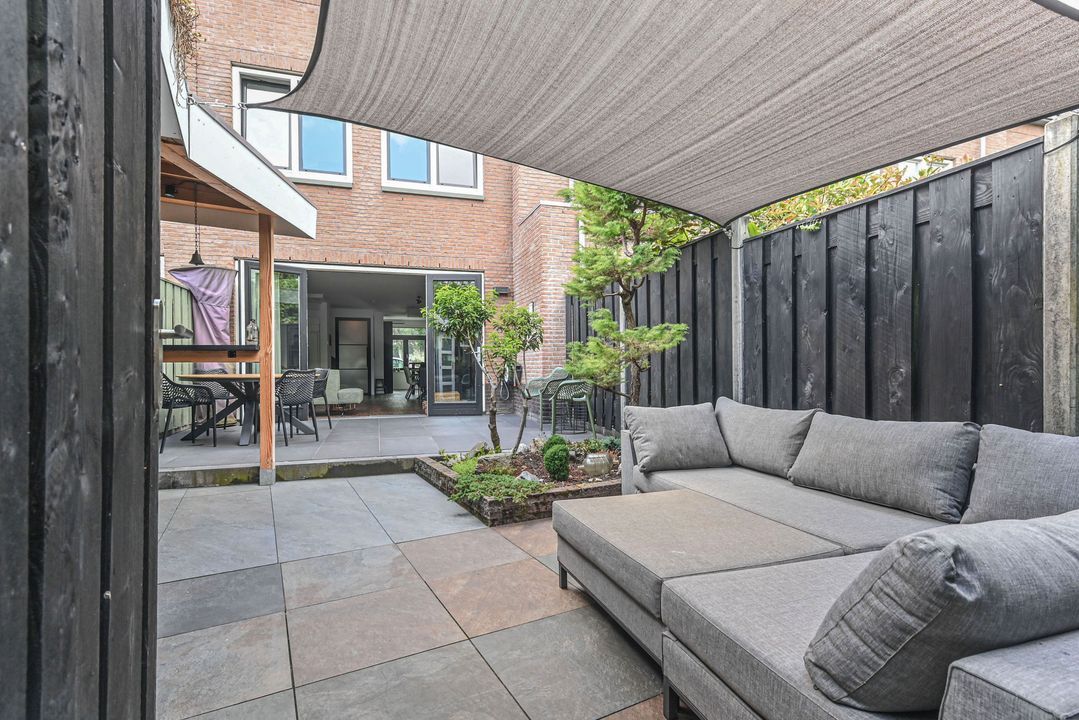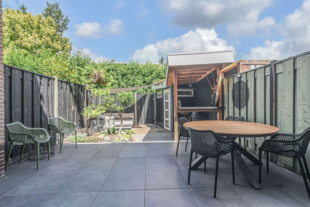 - In 2024 is de achtertuin geheel vernieuwd en is er een houten overkapping geplaatst met sedum dak