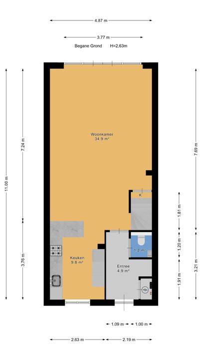 - The backyard faces northeast, is over 8.50 meters deep, and has a back entrance