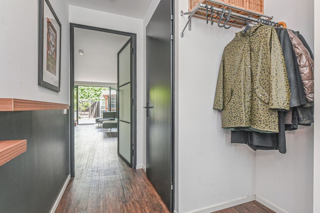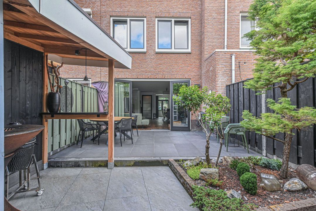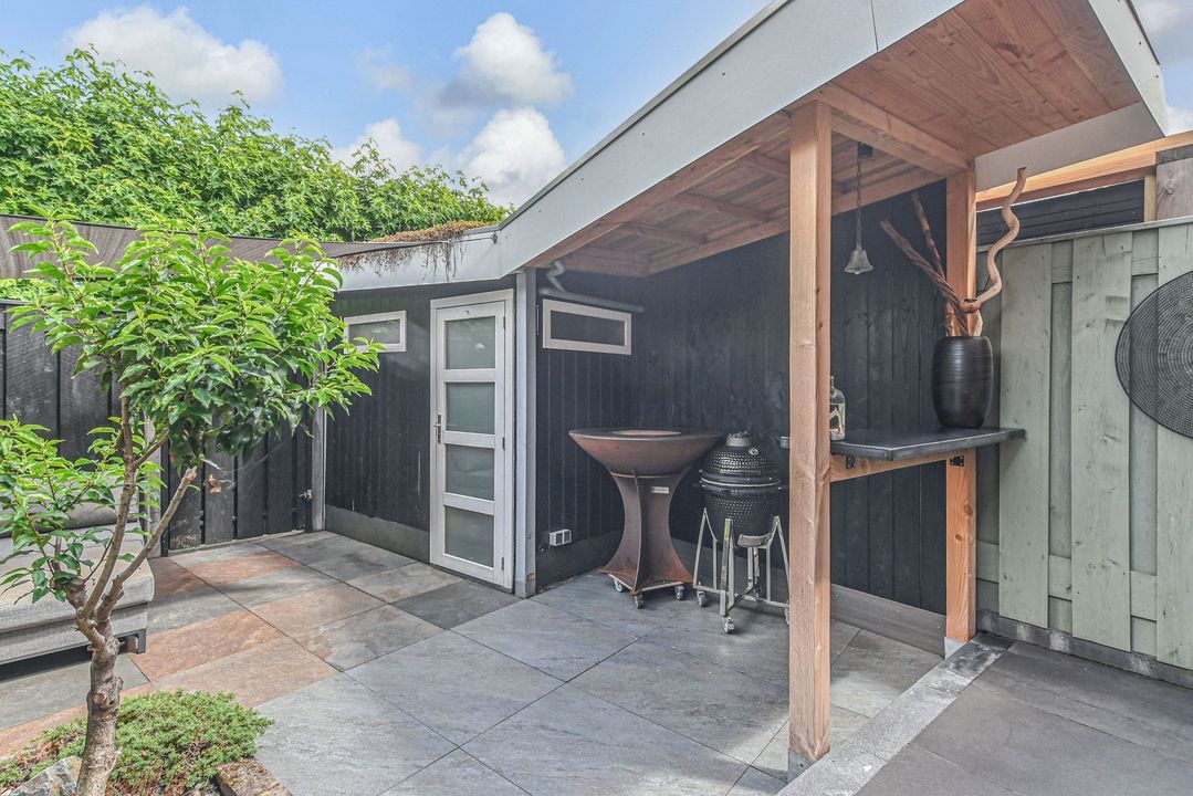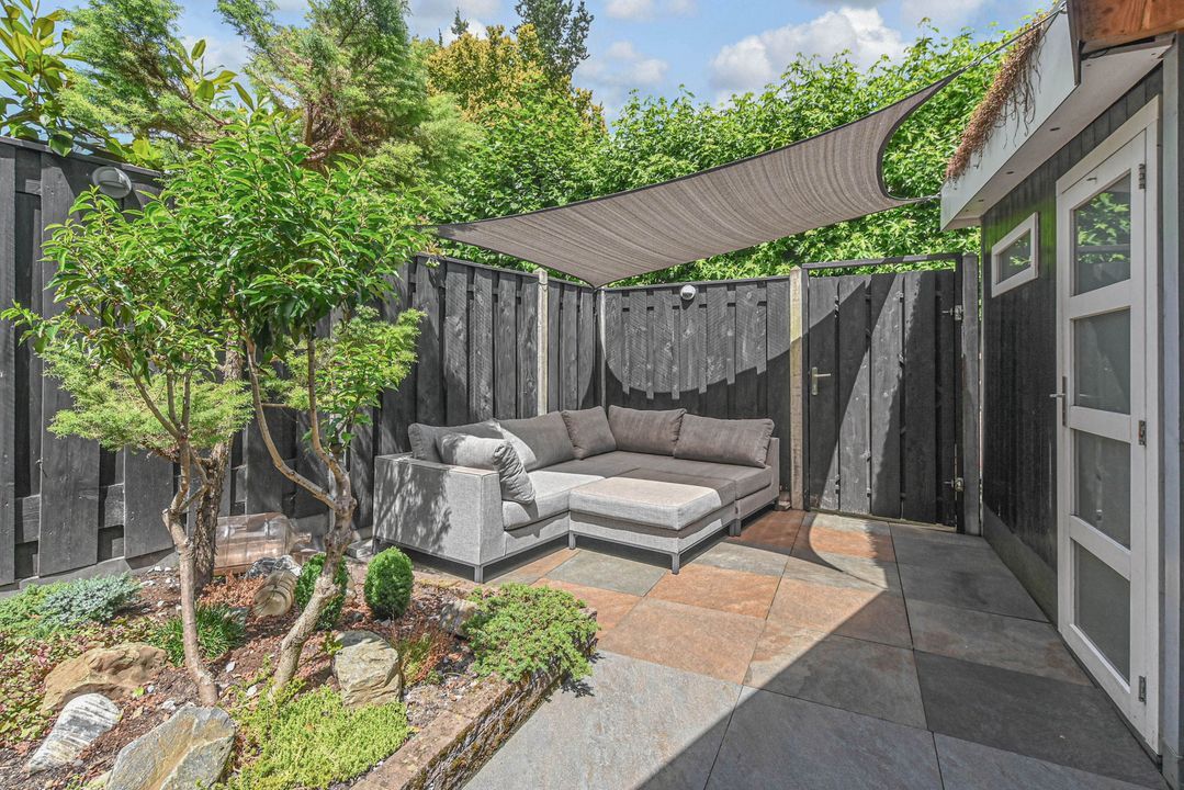 - In 2024 is de achtertuin geheel vernieuwd en is er een houten overkapping geplaatst met sedum dak