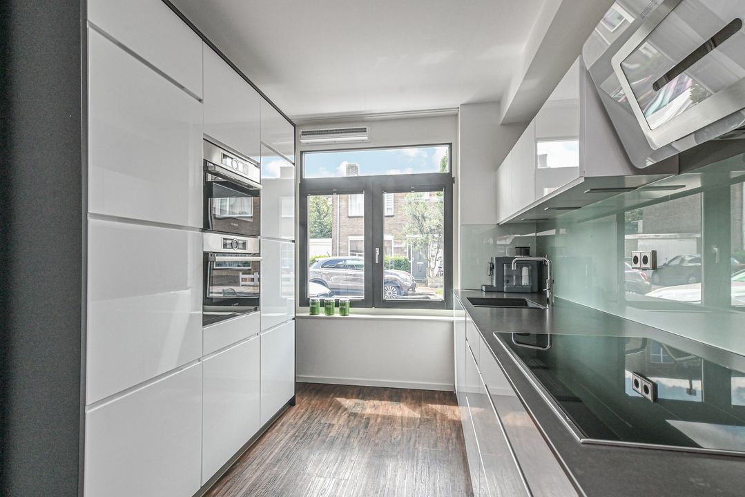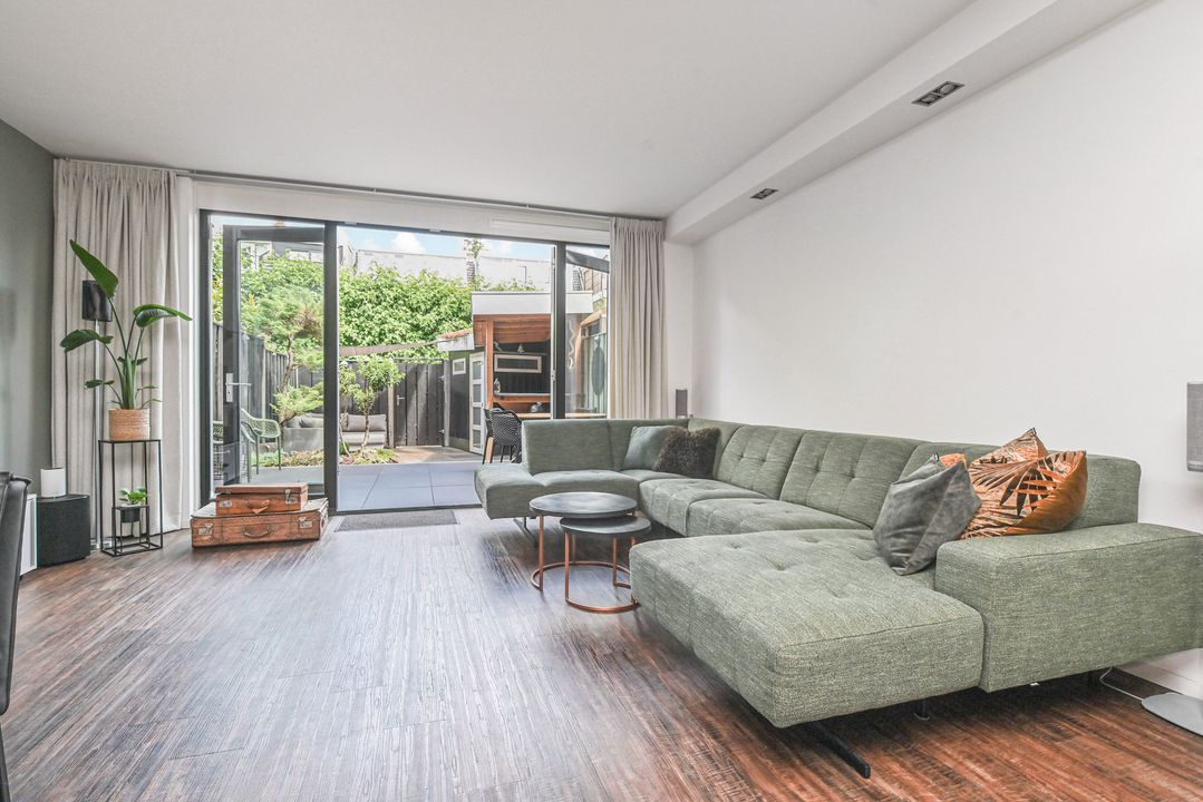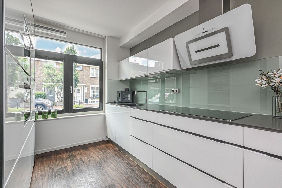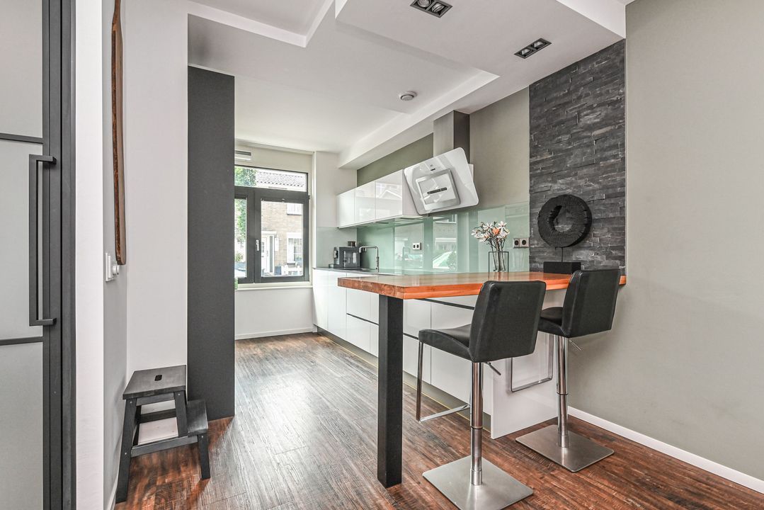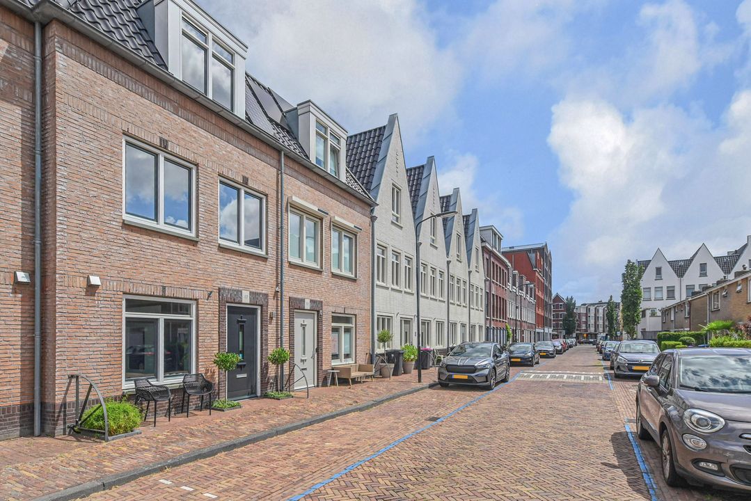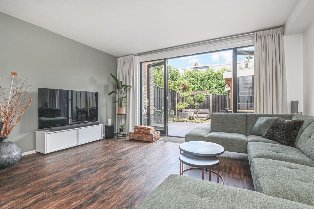 This modern, architect-designed townhouse is located in the heart of the charming and renovated Damcentrum district of Leidschendam, with everything within easy reach. This 6-room terraced house is literally a stone's throw from the charming Sluisjes and behind the newly constructed Nieuwe Plaspoelhaven. In addition, the house has a beautifully landscaped backyard, a sunny roof terrace, and private parking in the enclosed parking garage. It also features a garden-facing living room, a luxury kitchen with built-in appliances, 5 bedrooms, two modern bathrooms and toilets, an indoor storage room, and a wooden shed in the backyard. Everything you need is nearby: shops, restaurants, childcare/schools, public transportation, and sports facilities.