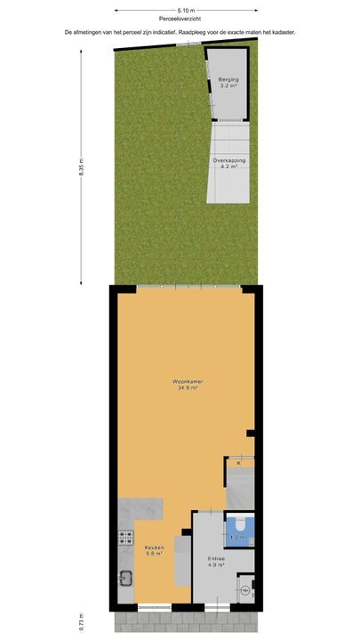 - De achtertuin ligt op het noordoosten, heeft een diepte van ca 10 meter en heeft een achterom met een poort op eigen perceel