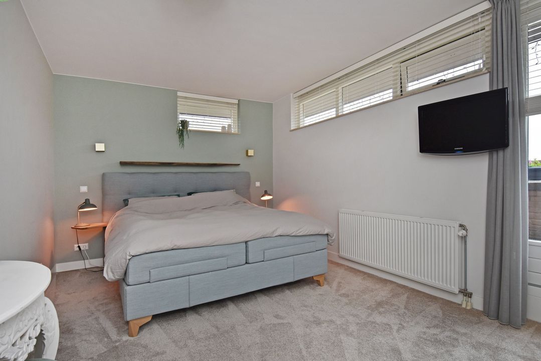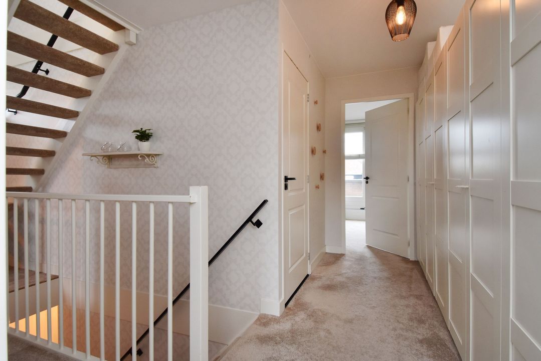 De gehele verdieping is voorzien van tapijt in een lichte kleurstelling. Overloop met zijraam en vaste trap naar de 2e verdieping. Badkamer is in 2019 geheel vernieuwd en uitgevoerd in lichte tegels met houtaccenten en voorzien van vloerverwarming, inloopdouche, badkamermeubel met twee waskommen, toilet en een designradiator. Royale hoofdslaapkamer aan de voorzijde met toegang tot het voorgelegen balkon. Ruime achterslaapkamer en een kleinere kamer, die praktisch is ingericht als wasruimte met opstelplaats voor de wasmachine en droger en veel bergruimte. Beide kamers met toegang tot het achtergelegen balkon. Er is een bouwvergunning voor het realiseren van een opbouw boven de garage, waarmee 27m2 extra woonruimte kan worden gerealiseerd, voor bijvoorbeeld een extra badkamer en slaapkamer.