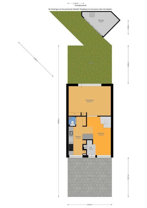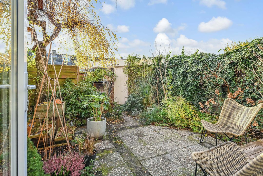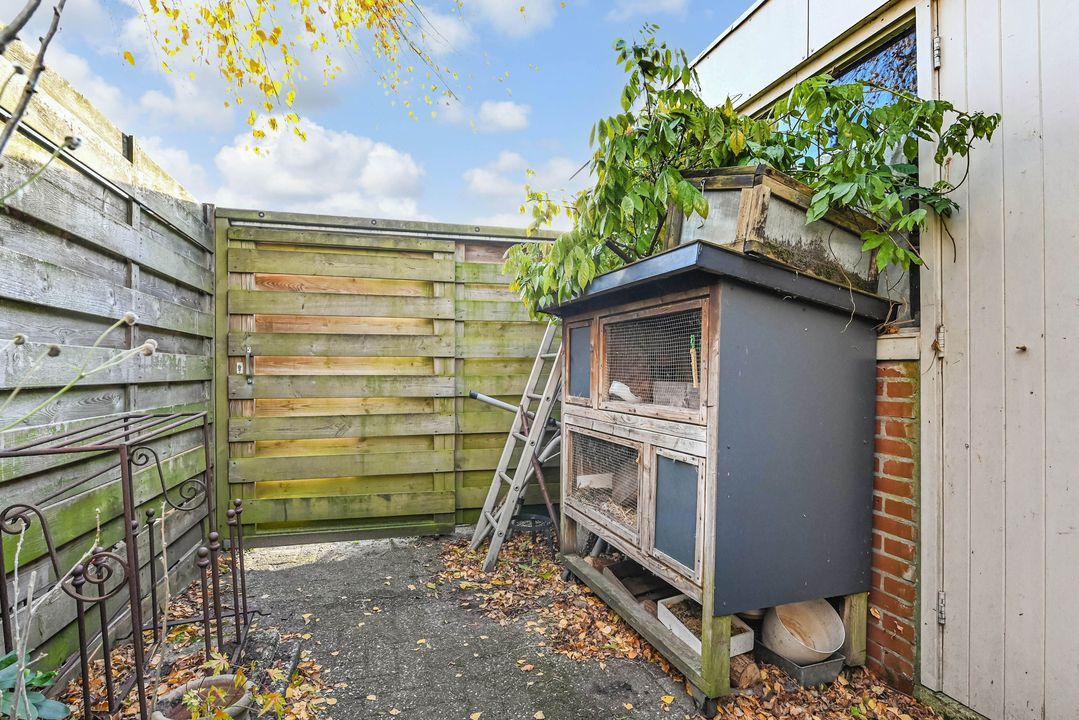 - De achtertuin ligt op het zuidwesten met een vrijstaande stenen berging en achterom