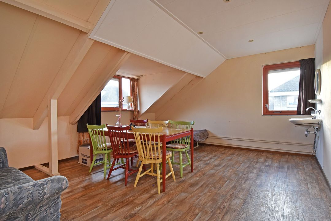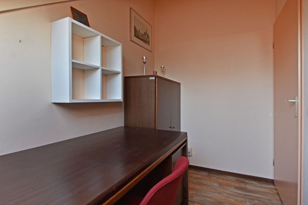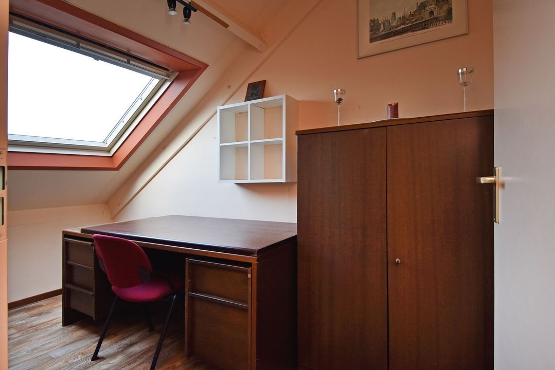 Overloop. Werkkamer met Velux-dakraam en opstelplaats voor CV-Combiketel (Nefit 2023) en mechanische ventilatie unit. Ruime slaapkamer van circa 21m2 met dakkapel aan de voorzijde, zijraam, wastafel en inbouwspots. Op eenvoudige wijze is deze kamer in twee aparte (slaap-)kamers op te delen.