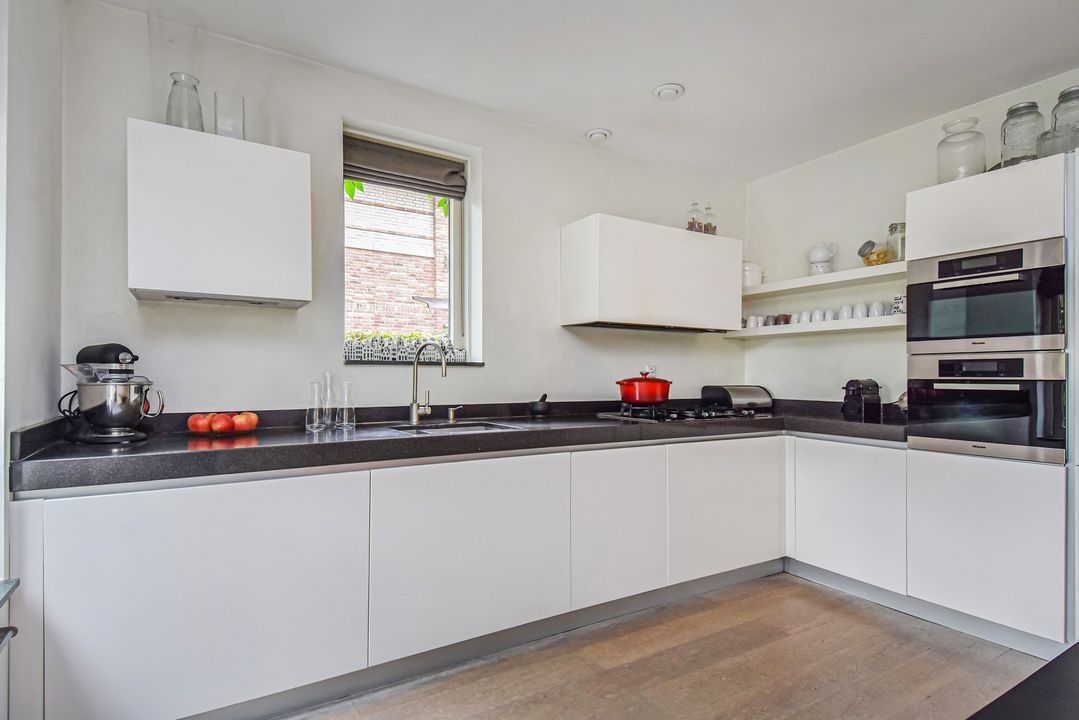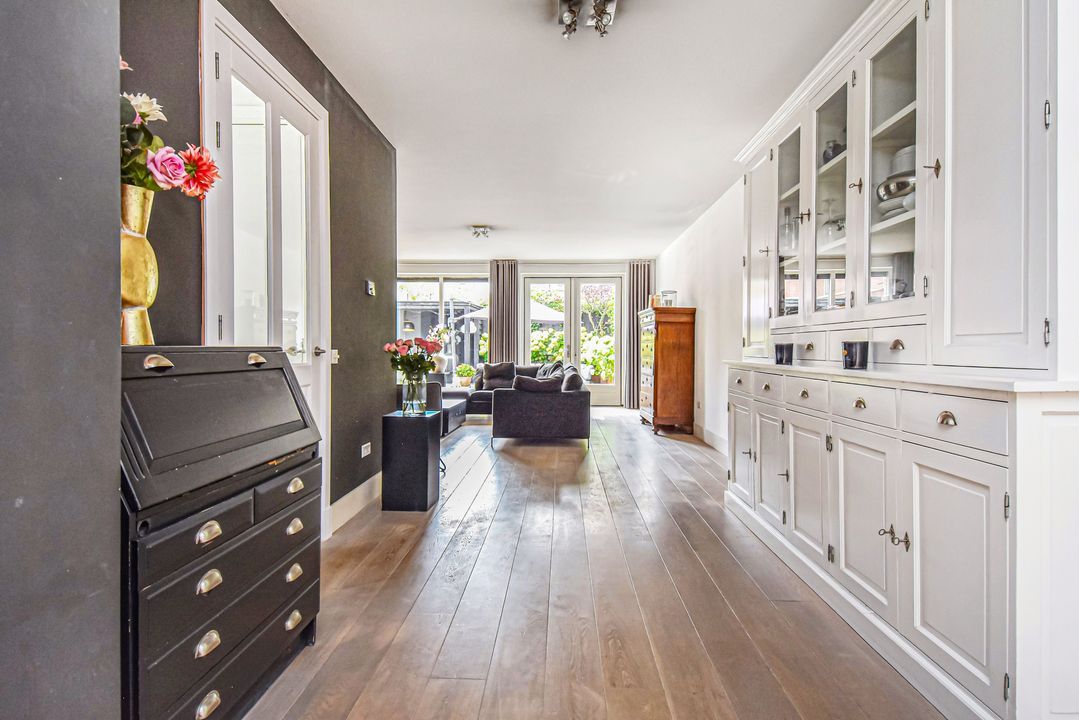 Ruime entree/hal met lichte eiken vloerdelen, meterkast, trapkast en open trapopgang naar eerste verdieping. Toiletruimte voorzien van zwevend toilet met fonteintje. Aan de voorzijde bevindt zich de royale woonkeuken van circa 22m2 voorzien van fraaie, lichte eiken vloerdelen, natuurstenen aanrechtblad en diverse inbouwapparatuur: dubbele spoelbak, 5-pits gaskookplaat, afzuigkap, vaatwasser, koelkast, vriezer, combi oven-/magnetron (2025), losse oven (2025) en vrij uitzicht richting de voortuin. Sfeervolle woonkamer van circa 42m2 voorzien van 1.20m uitbouw, lichte eiken vloerdelen, open haard, convectorput, grote raampartij en twee openslaande deuren naar fraai aangelegde achtertuin. De achtertuin is 8.40m x 9.30m diep, heeft een ruime houten volledig geïsoleerde overkapping en een kleine berging. Tevens is de aangebouwde stenen garage te bereiken, deze is volledig betegeld en geïsoleerd.