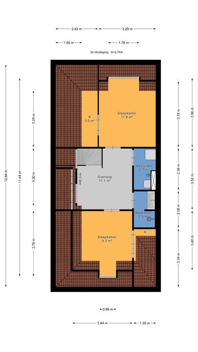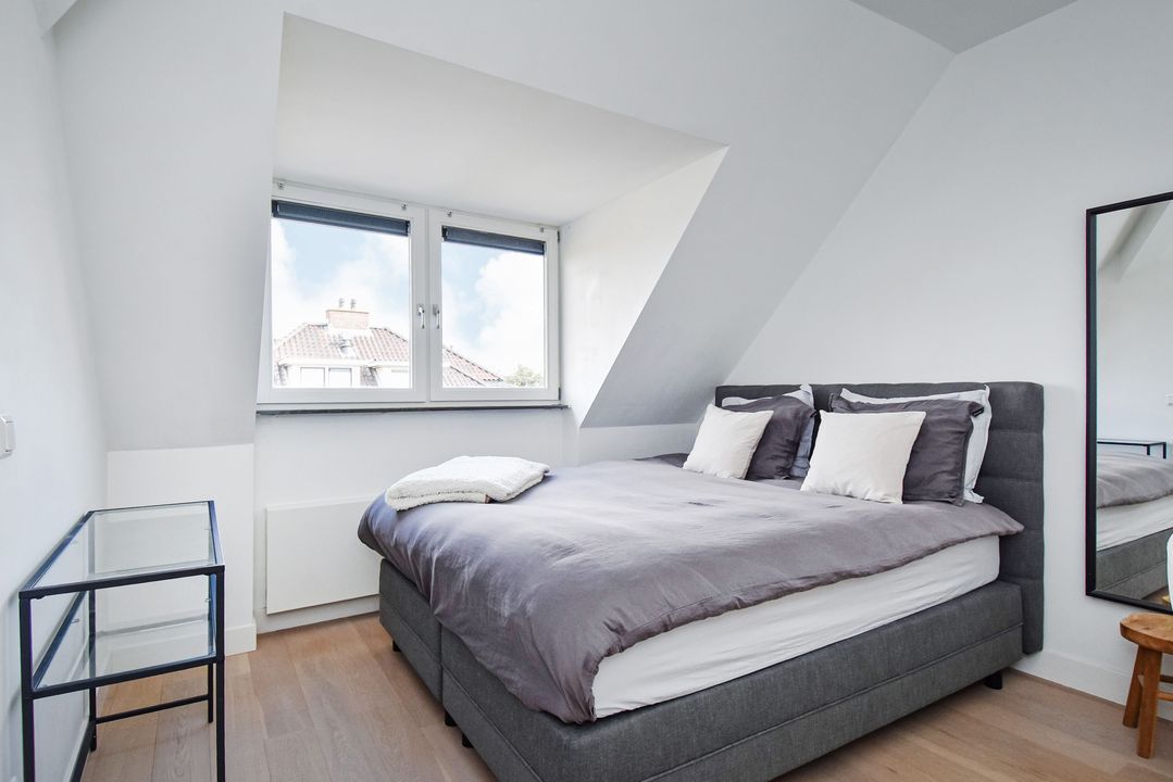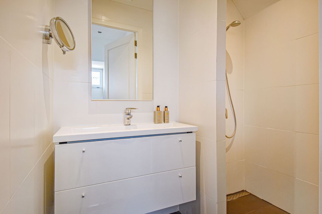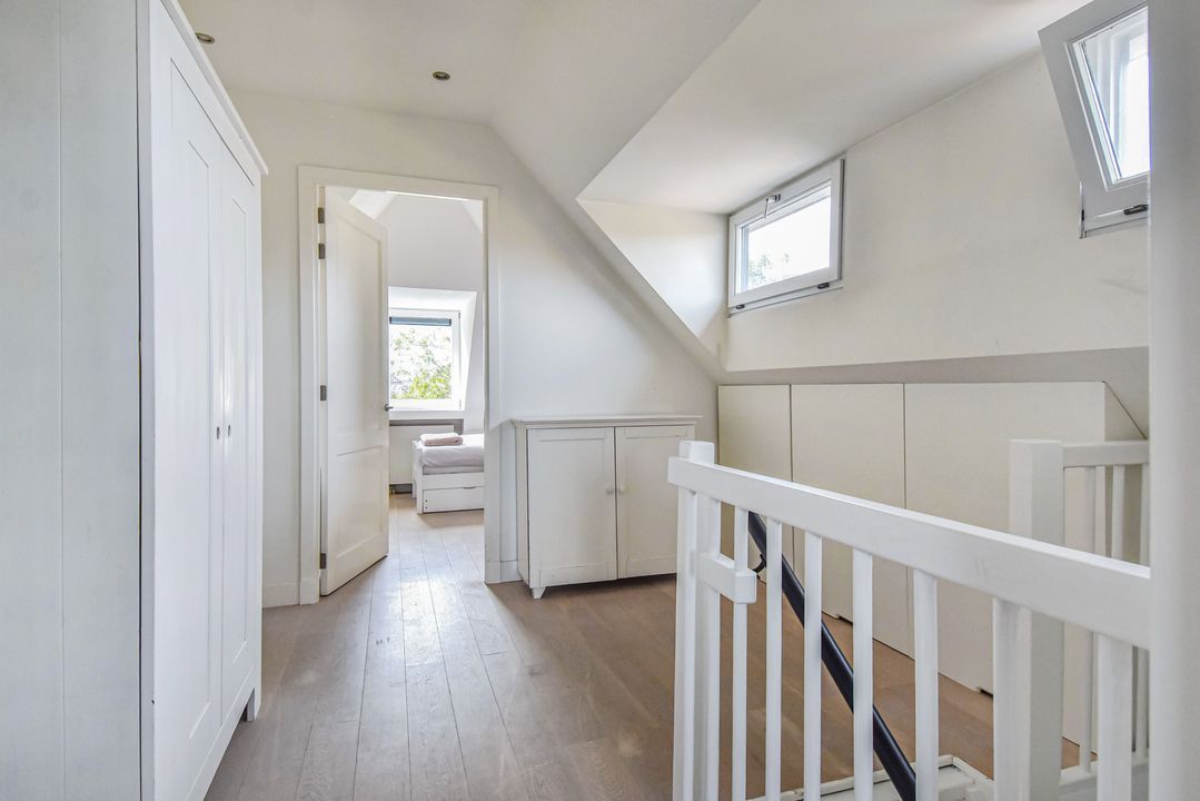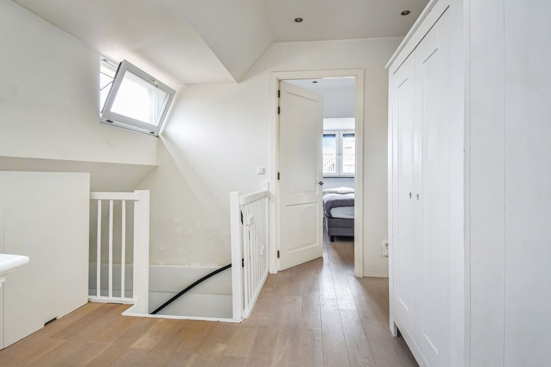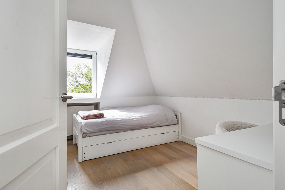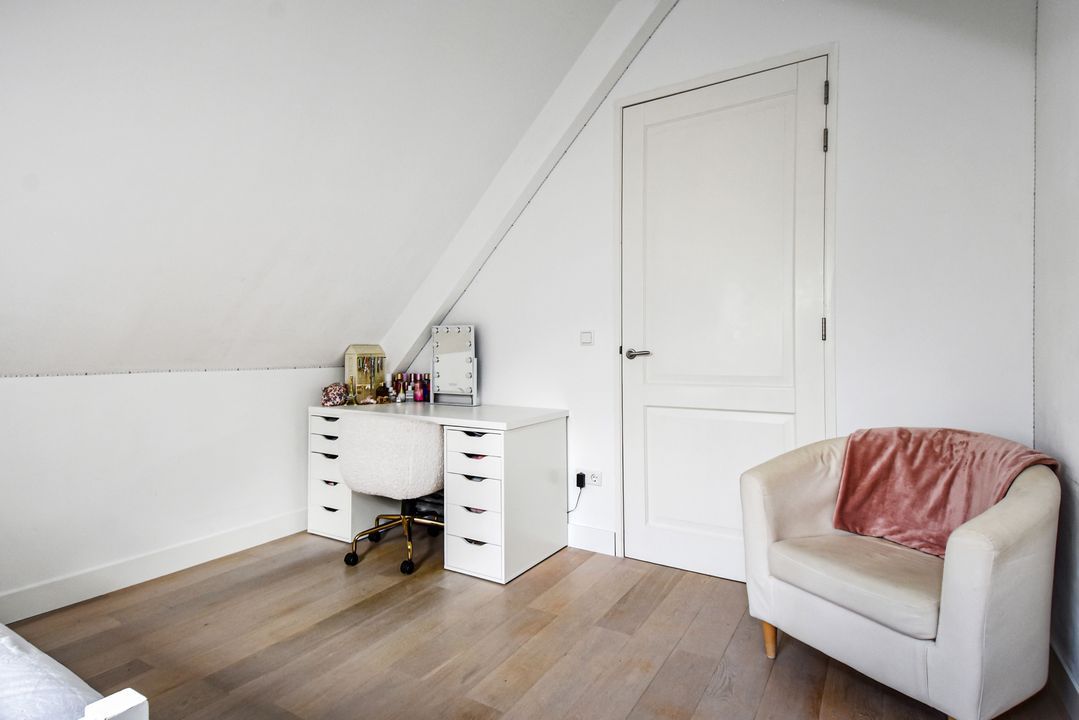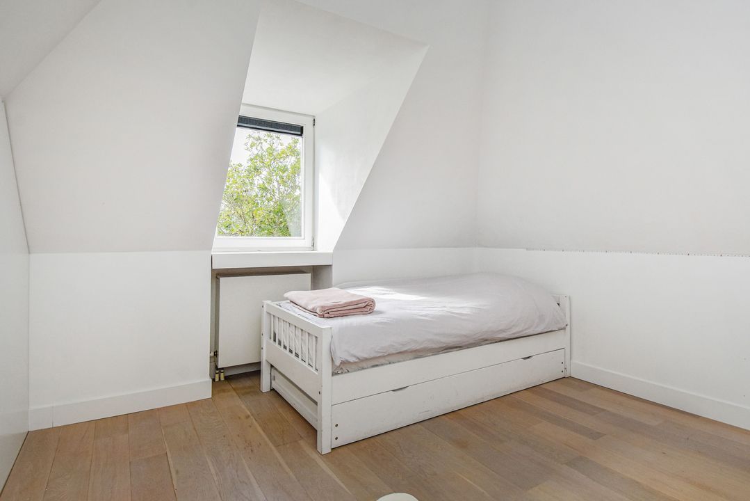 Ruime open zolderverdieping met dakkapel en knieschotten. Aparte stook-/wasruimte met opstelplaats voor CV-Combiketel (2025), wasmachine, droger en mechanische ventilatie unit. Ruime achterslaapkamer met dakkapel, eiken vloerdelen, knieschotten en vaste garderobekast. Lichte, volledig betegelde 2e badkamer voorzien van inloopdouche met easydrain en badkamermeubel met twee laden, wastafel en spiegel. Voorslaapkamer met dakkapel, lichte eiken vloerdelen en knieschotten.