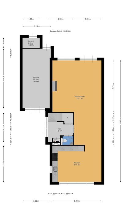 - De woonkamer is vanuit de bouw 1.20m uitgebouwd, hierdoor is een ruime woonverdieping ontstaan