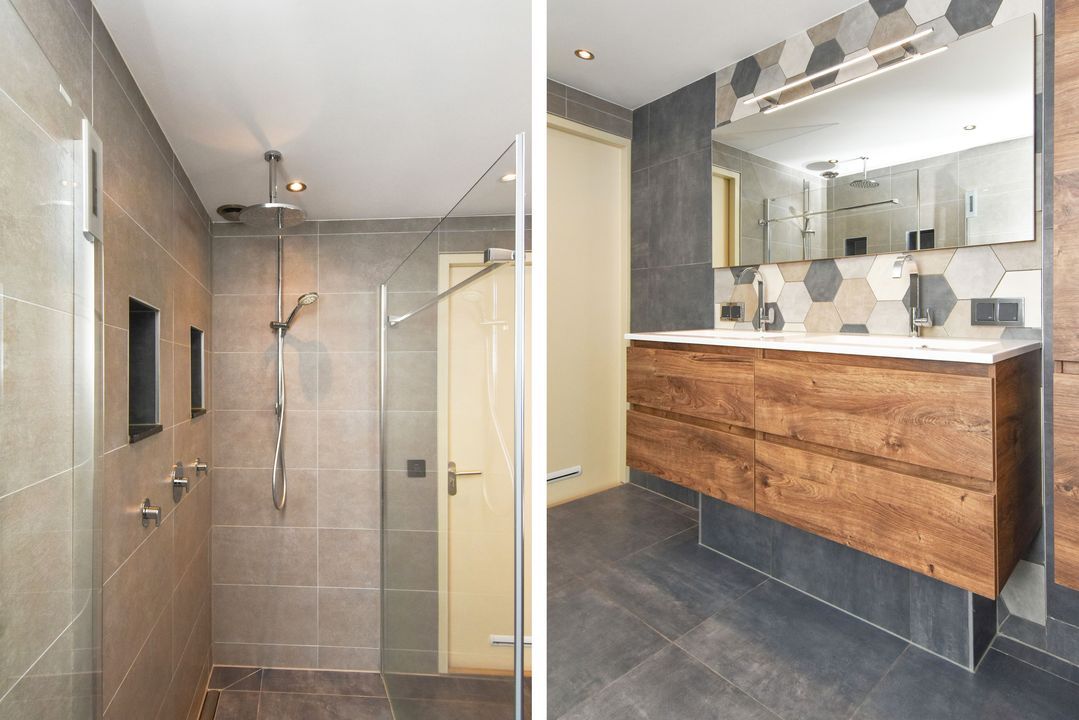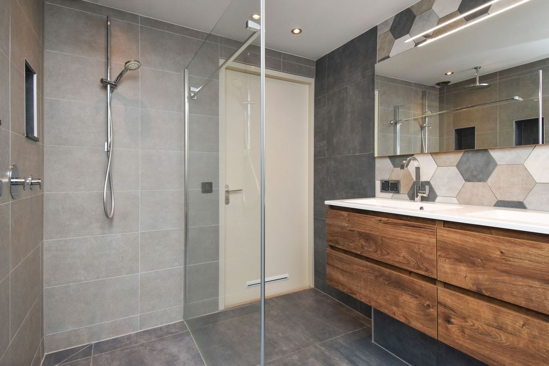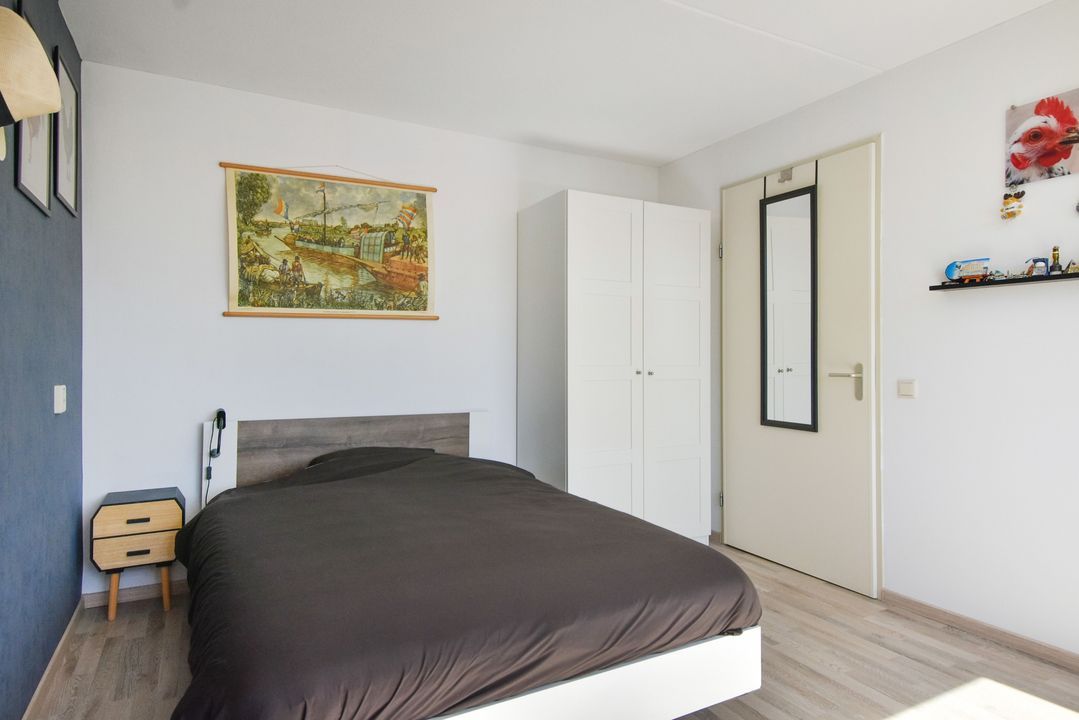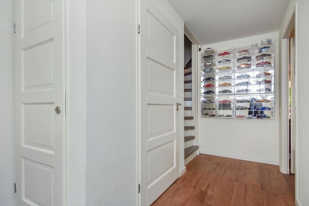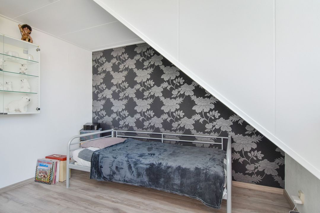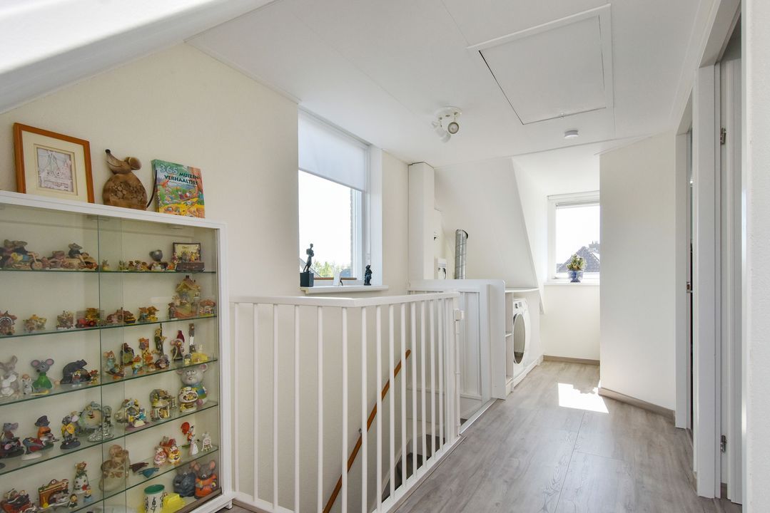 Overloop met laminaat en vaste trapopgang. Moderne, betegelde toiletruimte met staand toilet. Twee achterslaapkamers, beide met laminaatvloer en vrij uitzicht over de achtertuin. Moderne, volledig betegelde badkamer (2020) voorzien van vloerverwarming, ruime inloopdouche met glazen scherm, easydrain, ingebouwde kranen, hand- en stortdouche en twee nisjes, handdoekradiator, badkamermeubel en vier laden, dubbele wastafel, twee kranen en spiegel en een badkamerkast. Aan de voorzijde ligt de ruime ouderslaapkamer met laminaatvloer en balkon.