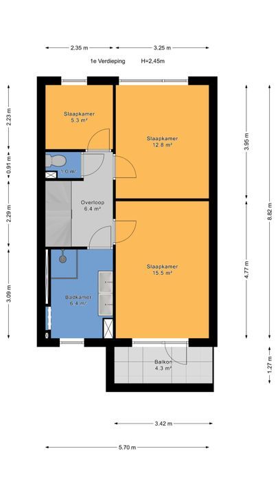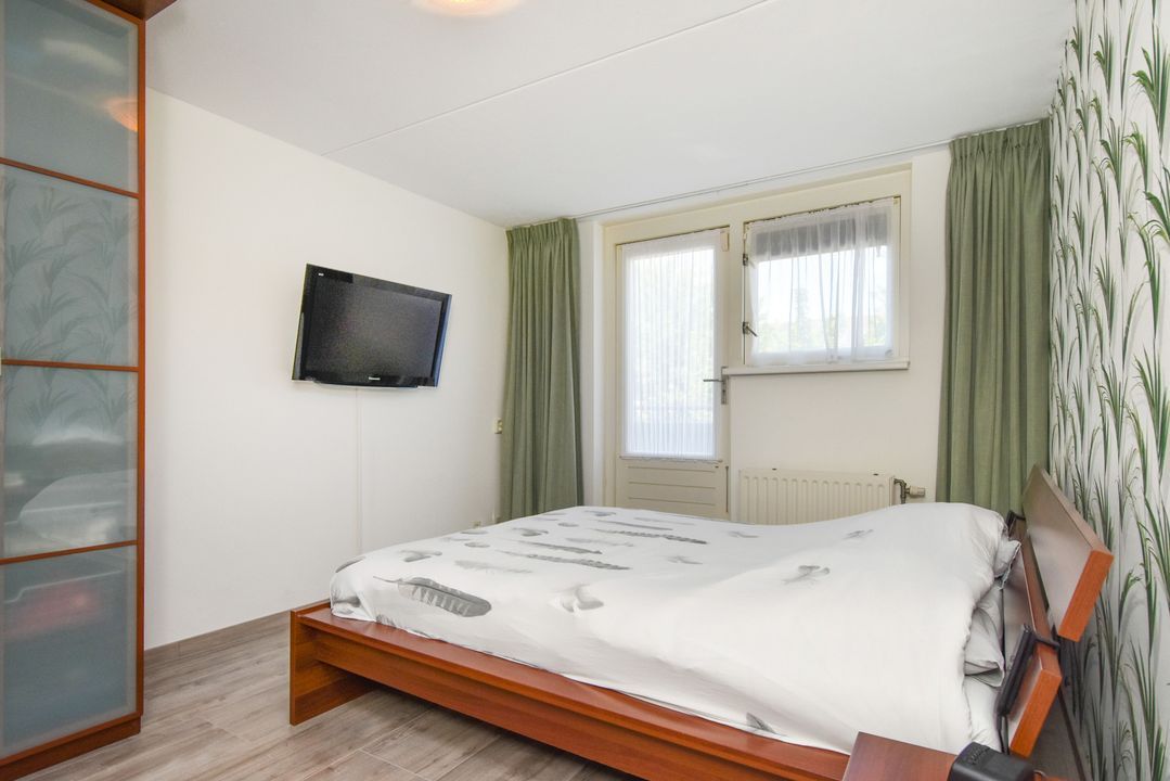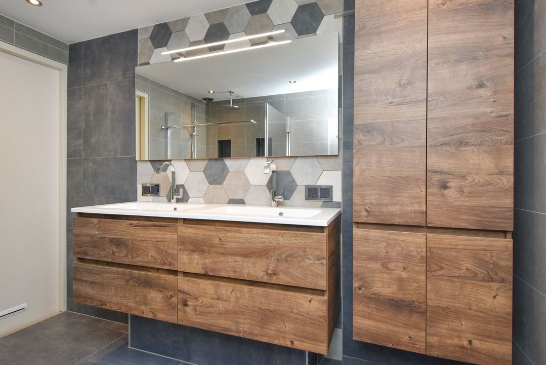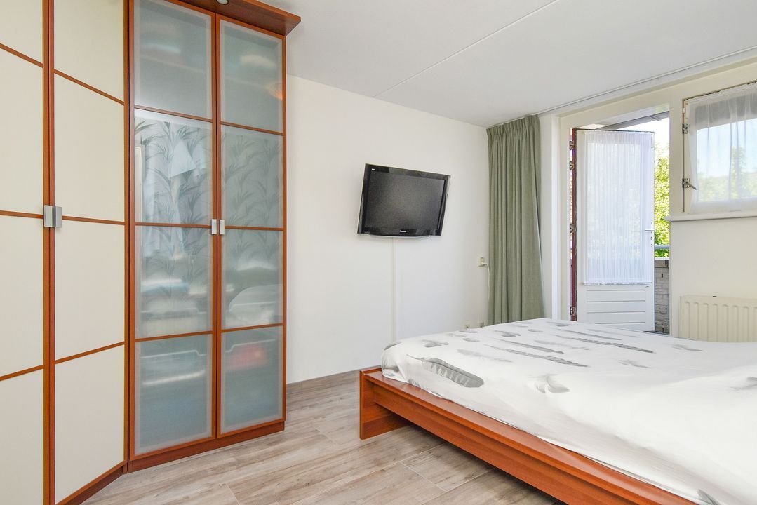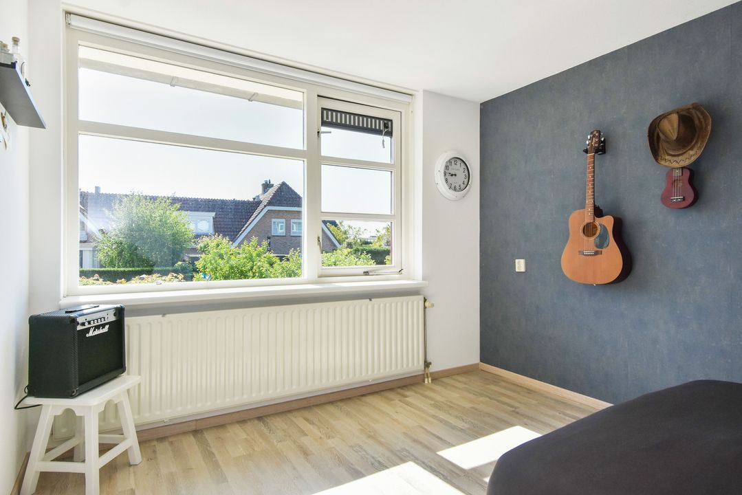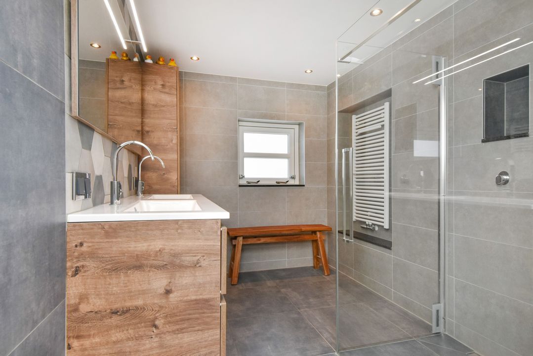 Overloop met laminaat en vaste trapopgang. Moderne, betegelde toiletruimte met staand toilet. Twee achterslaapkamers, beide met laminaatvloer en vrij uitzicht over de achtertuin. Moderne, volledig betegelde badkamer (2020) voorzien van vloerverwarming, ruime inloopdouche met glazen scherm, easydrain, ingebouwde kranen, hand- en stortdouche en twee nisjes, handdoekradiator, badkamermeubel en vier laden, dubbele wastafel, twee kranen en spiegel en een badkamerkast. Aan de voorzijde ligt de ruime ouderslaapkamer met laminaatvloer en balkon.