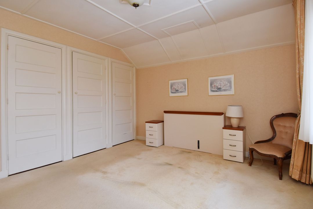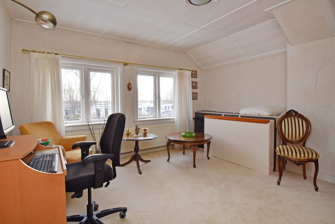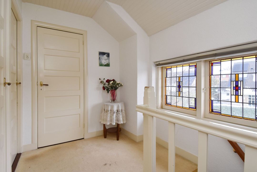 Lichte overloop met vaste trapopgang naar bergvliering. 1 achterslaapkamer met vaste kasten. Standaard badkamer voorzien van douche, toilet, wastafel met spiegelkast en opstelplaats voor wasmachine en droger. 2 voorslaapkamers, beide met vaste kasten.