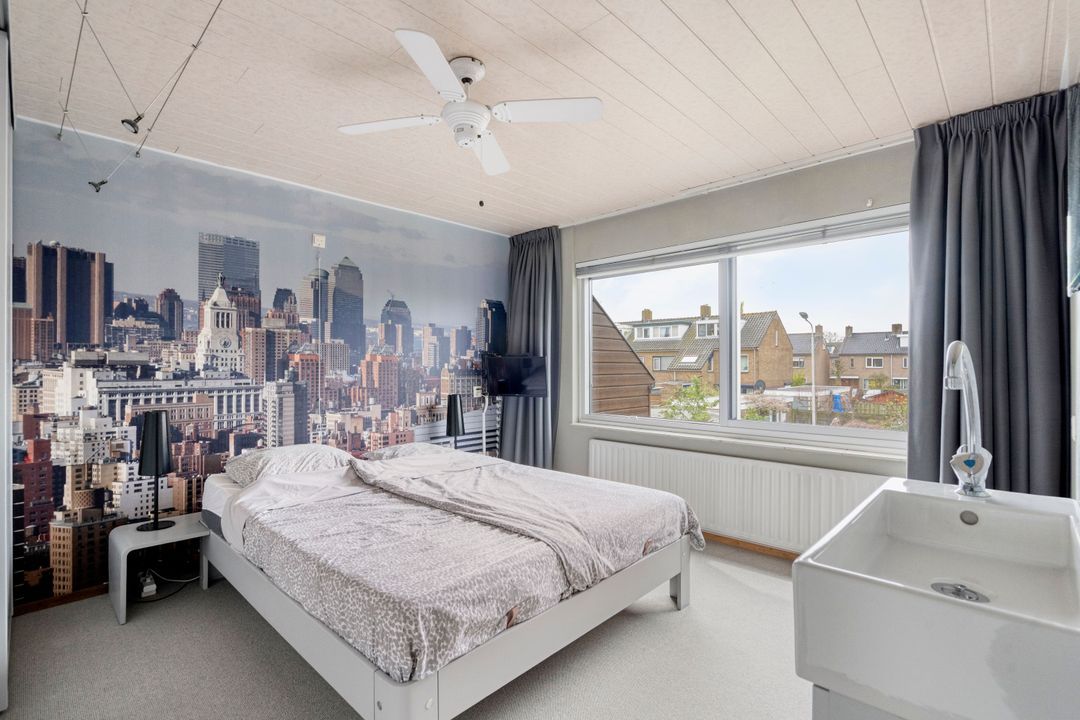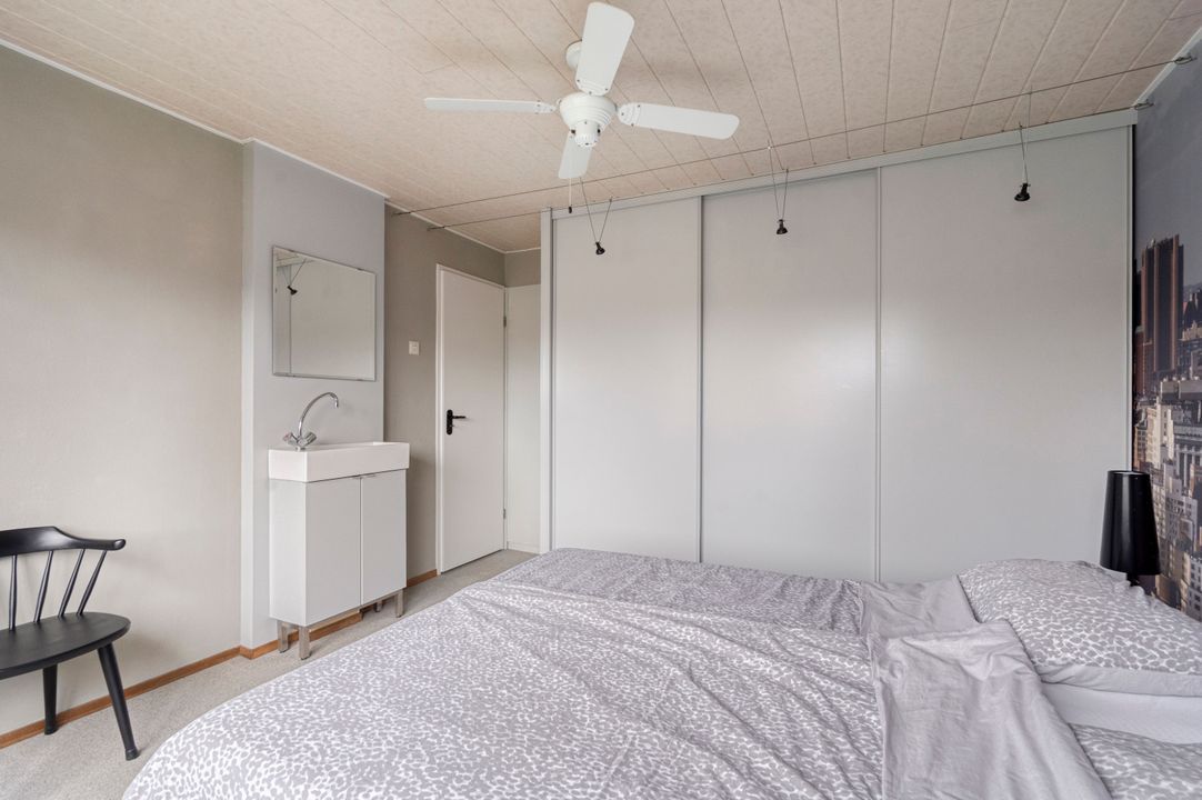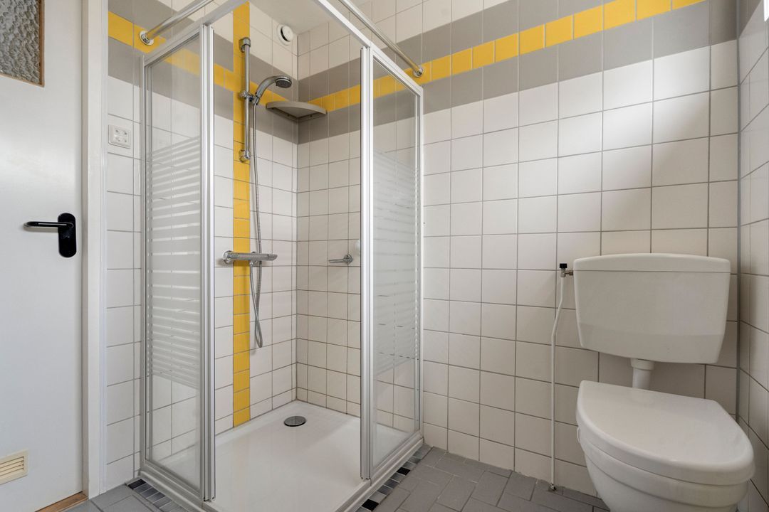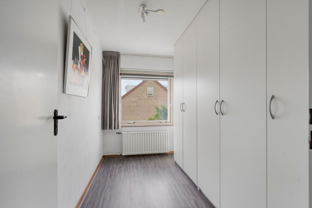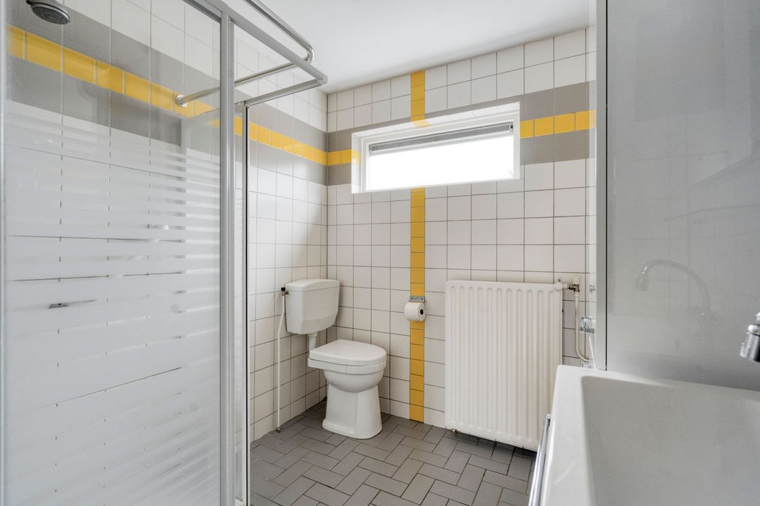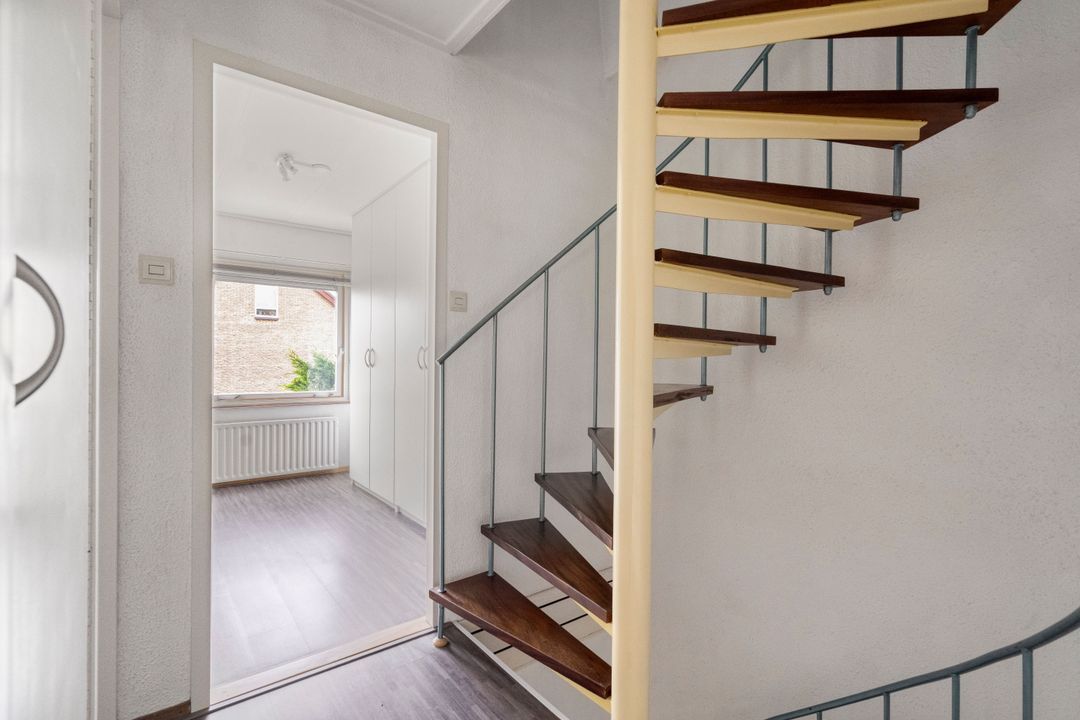 Overloop met laminaatvloer, vaste kaste en open trapopgang. Voorslaapkamer met laminaatvloer en vrij uitzicht. Volledig betegelde badkamer voorzien van een 2e toilet, douchecabine met thermostaatkraan, badkamermeubel met wastafel en spiegel, opstelplaats voor wasmachine en droger en raam. Twee ruime achterslaapkamers, waarvan één met laminaatvloer en de andere met wastafel.