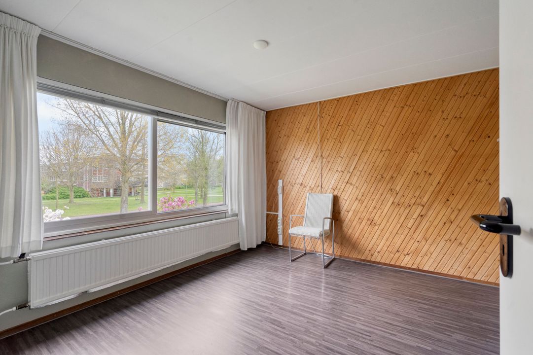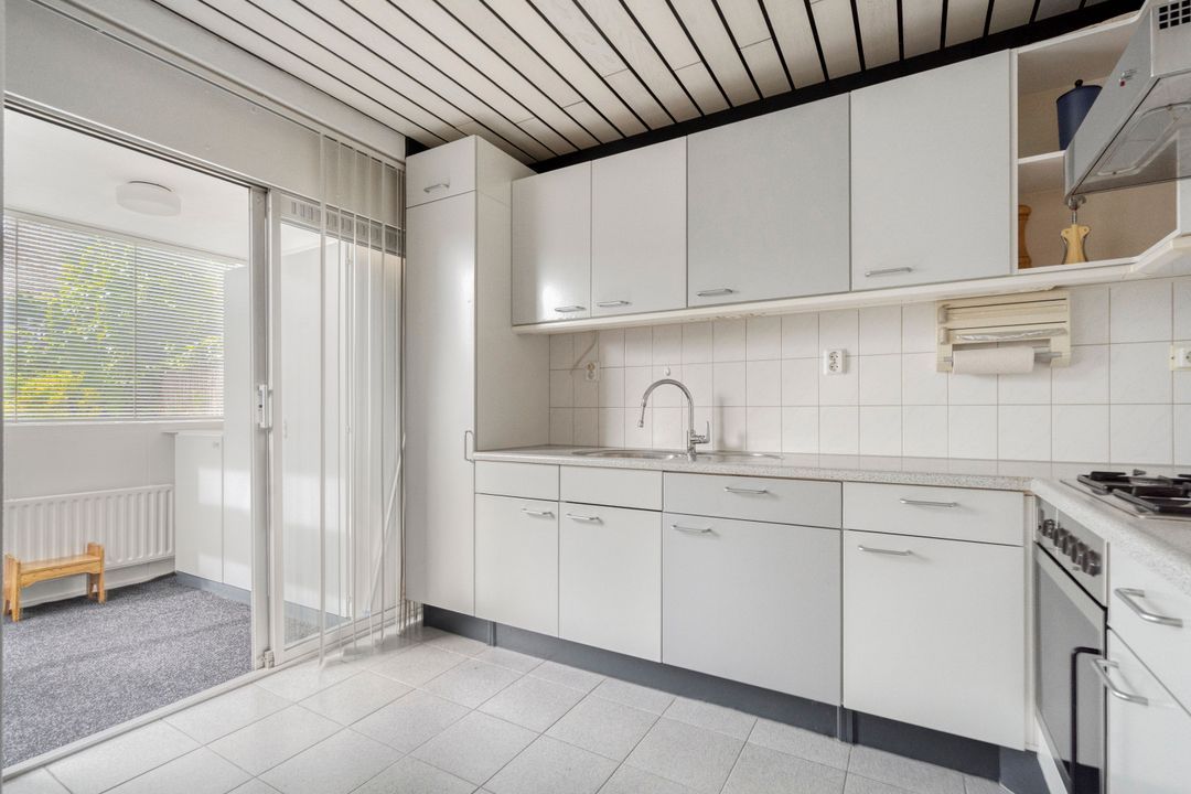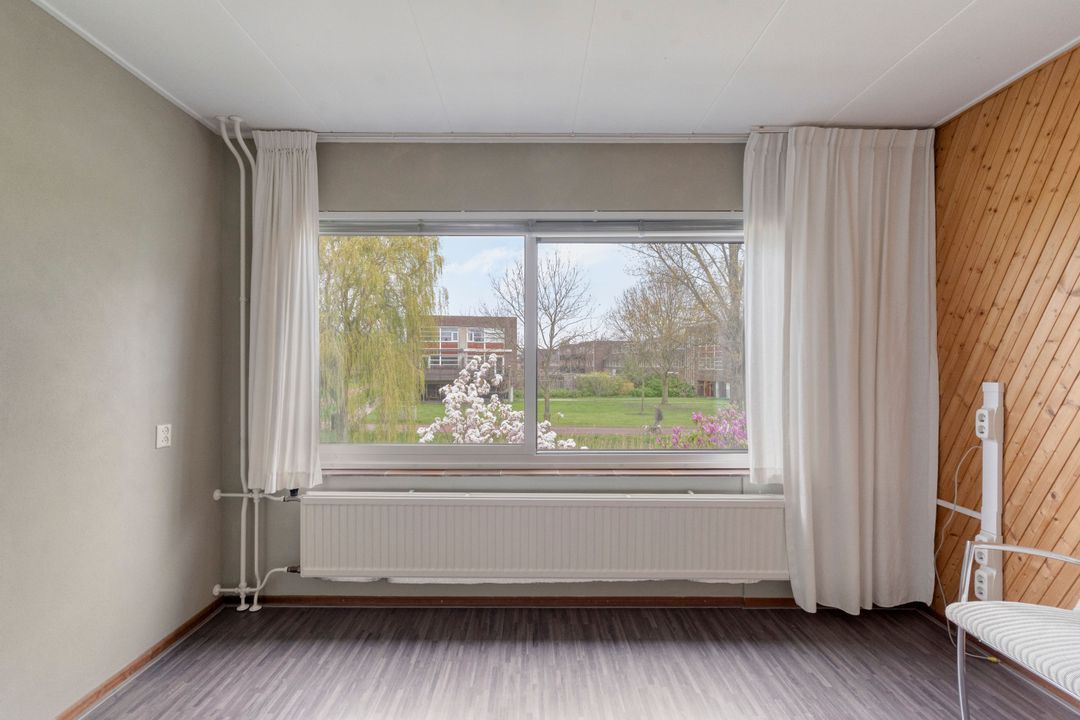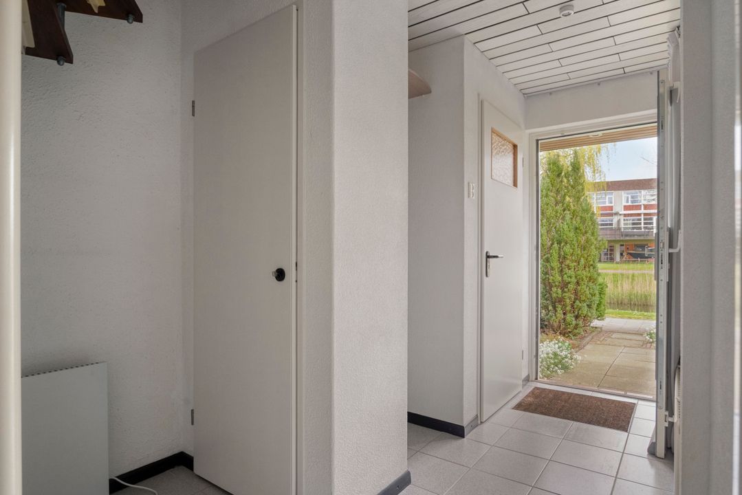 Entree met plavuizen vloer, vaste kast, meterkast (vernieuwd in 2019), garderobe en open trapopgang. Volledig betegelde toiletruimte met toilet en fonteintje. Lichte doorzonkamer voorzien van parketvloer, verlaagd plafond met inbouwspots en vrij uitzicht aan de voorzijde richting brede sloot. Open hoekkeuken voorzien van plavuizen vloer met diverse inbouwapparatuur, te weten: spoelbak, gaskookplaat, afzuigkap, oven en inbouwspots. Via een aluminium schuifpui kom je in de aangebouwde bijkeuken met voorraadkast en schuifpui naar de achtertuin.