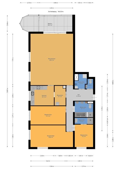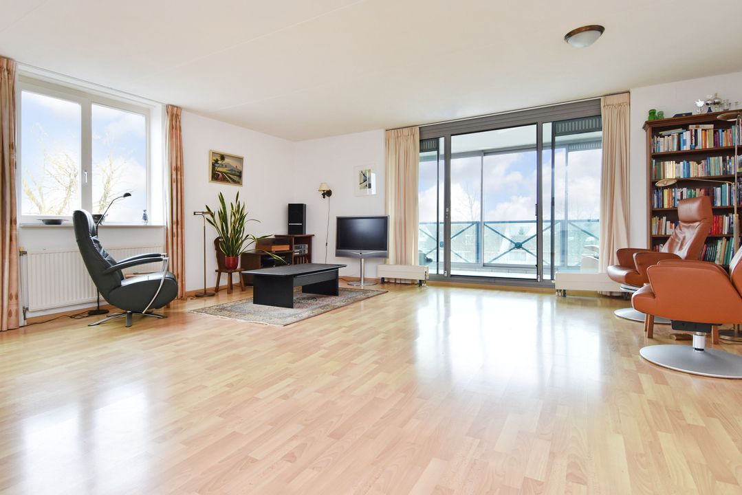 Entree/hal appartement met garderobe en videofoon. Lichte, volledig betegelde toiletruimte met toilet met fonteintje. Ruime inpandige berging met opstelplaats voor CV-Combiketel (Nefit 2012), wasmachine, droger en mechanische ventilatie unit. Riante living van circa 49m2 voorzien van laminaatvloer, zijramen en aluminium schuifpui naar zonnig balkon op het zuidwesten. Het circa 7.50 x 2.35 meter brede balkon ligt op het zonnige zuidwesten, biedt veel privacy en heeft een fantastisch vrij uitzicht over water- en groenstrook. Gesloten hoekkeuken voorzien van laminaatvloer en uitgevoerd met spoelbak, vaatwasser, 4-pits kookplaat, vlakscherm-afzuigkap, carrouselkast, koel-/vriescombinatie en oven. Aparte bijkeuken met binnendeur vanuit de keuken en vanuit de hal. Lichte, volledig betegelde badkamer voorzien van douchecabine, ligbad, 2e toilet, dubbele wastafel met spiegels. 3 ruime slaapkamers van resp. 9m2, 15m2 en 20m2. Vanuit de kleine slaapkamer is een binnendeur naar de 2e volledig betegelde badkamer met douche en wastafel met spiegel.