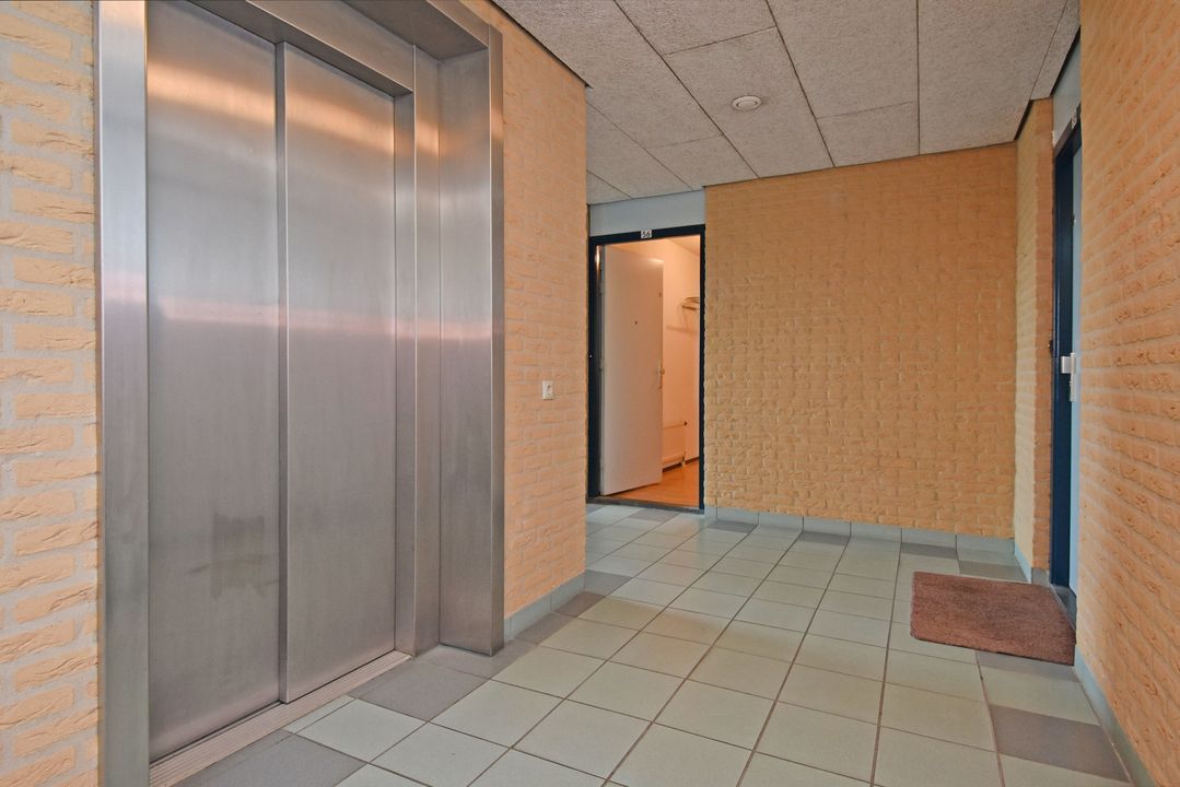 Gemeenschappelijke hal met meterkasten, lift en trappenhuis.