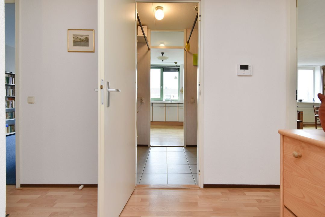 Entree/hal appartement met garderobe en videofoon. Lichte, volledig betegelde toiletruimte met toilet met fonteintje. Ruime inpandige berging met opstelplaats voor CV-Combiketel (Nefit 2012), wasmachine, droger en mechanische ventilatie unit. Riante living van circa 49m2 voorzien van laminaatvloer, zijramen en aluminium schuifpui naar zonnig balkon op het zuidwesten. Het circa 7.50 x 2.35 meter brede balkon ligt op het zonnige zuidwesten, biedt veel privacy en heeft een fantastisch vrij uitzicht over water- en groenstrook. Gesloten hoekkeuken voorzien van laminaatvloer en uitgevoerd met spoelbak, vaatwasser, 4-pits kookplaat, vlakscherm-afzuigkap, carrouselkast, koel-/vriescombinatie en oven. Aparte bijkeuken met binnendeur vanuit de keuken en vanuit de hal. Lichte, volledig betegelde badkamer voorzien van douchecabine, ligbad, 2e toilet, dubbele wastafel met spiegels. 3 ruime slaapkamers van resp. 9m2, 15m2 en 20m2. Vanuit de kleine slaapkamer is een binnendeur naar de 2e volledig betegelde badkamer met douche en wastafel met spiegel.