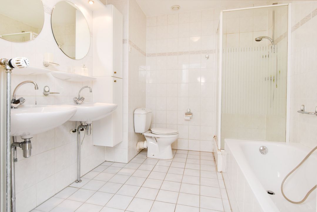 Entrance/hallway to the flat with cloakroom and videophone. Bright, fully tiled toilet with toilet and washbasin. Spacious indoor storage room with space for central heating combi boiler (Nefit 2012), washing machine, dryer and mechanical ventilation unit. Spacious living room of approximately 49m2 with laminate flooring, side windows and aluminium sliding doors to a sunny south-west facing balcony. The approximately 7.50 x 2.35 metre wide balcony faces the sunny southwest, offers plenty of privacy and has a fantastic unobstructed view over water and greenery. Enclosed corner kitchen with laminate flooring and equipped with sink, dishwasher, 4-burner hob, flat screen extractor hood, carousel cupboard, fridge/freezer and oven. Separate utility room with interior door from the kitchen and from the hall. Bright, fully tiled bathroom with shower cubicle, bath, second toilet, double washbasin with mirrors. Three spacious bedrooms measuring 9 m², 15 m² and 20 m² respectively. From the small bedroom there is an interior door to the second fully tiled bathroom with shower and washbasin with mirror.