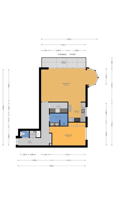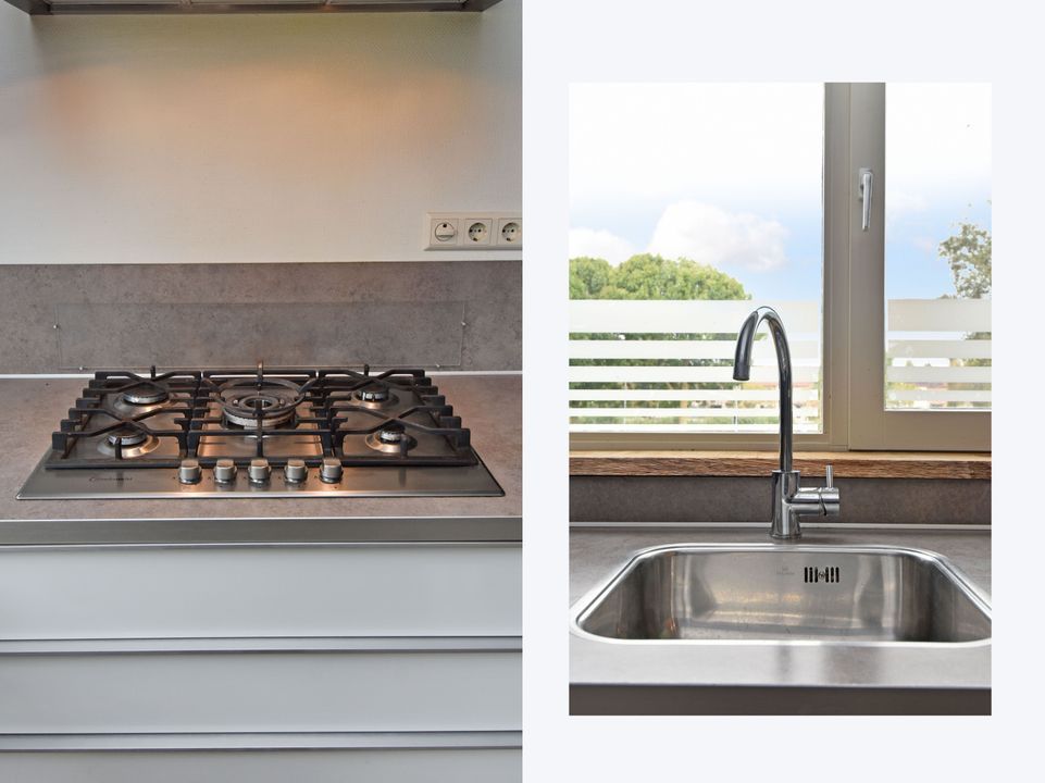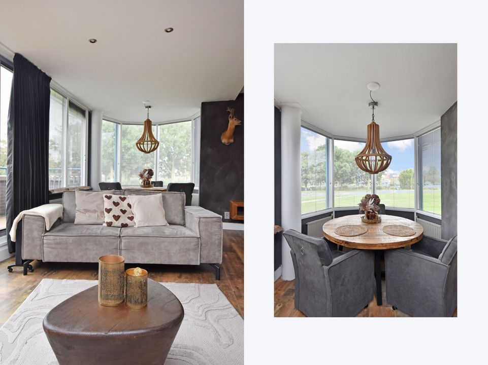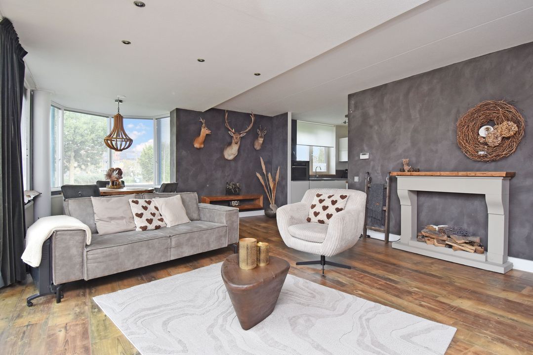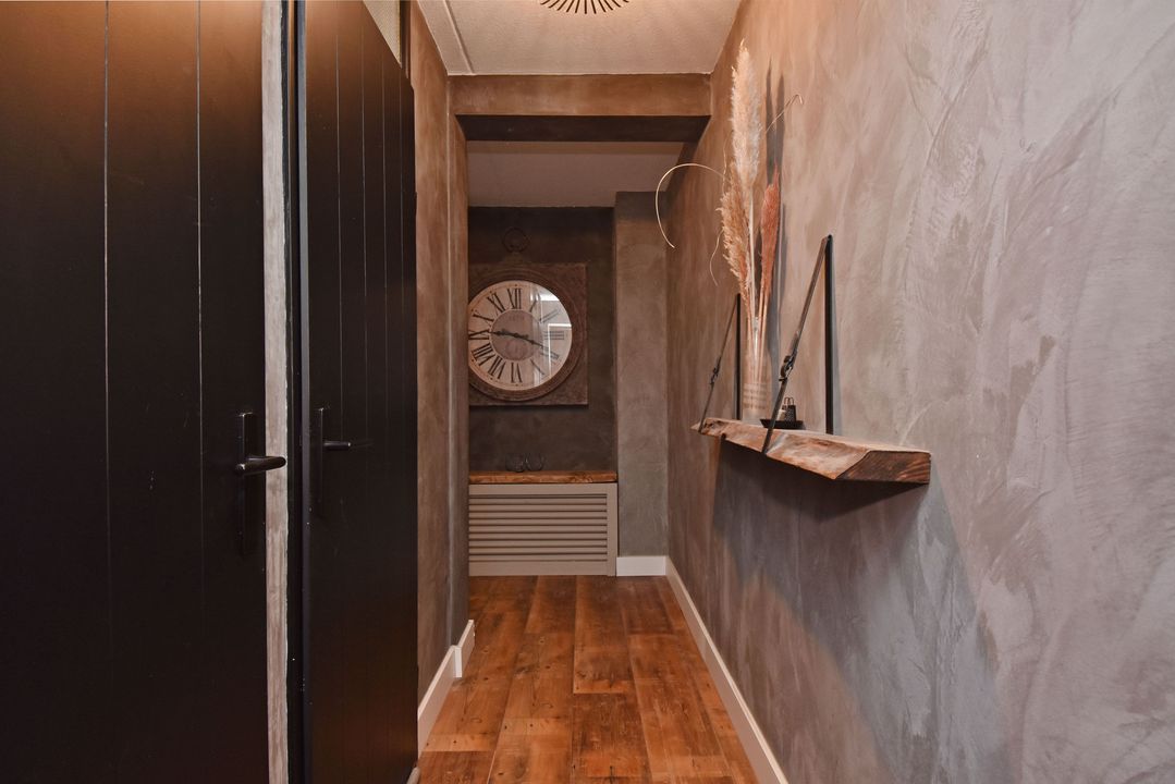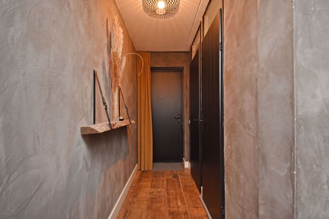 Entree/gang appartement met garderobe en videofoon. Luxe, volledig betegelde toiletruimte (2021) voorzien van zwevend toilet, nisje en hoekfonteintje. Vaste kast met garderobe en opstelplaats voor CV-Combiketel (Bosch) en mechanische ventilatie unit. Slaapkamer met laminaatvloer en zijraam. Moderne, volledig betegelde badkamer (2020) voorzien van houten badkamermeubel met twee laden, twee marmeren waskommen en ingebouwde kranen, houten spiegel, ruime inloopdouche met easydrain en hand- en stortdouche, handdoekradiator en inbouwspots. Bijkeuken / inpandige berging et opstelplaats voor wasmachine en droger. Sfeervolle woonkamer van circa 33m2 voorzien van laminaatvloer, zij erker, vrij uitzicht en een aluminium schuifpui naar zonnig balkon op het zuidwesten. Moderne hoekkeuken met spoelbak, vaatwasser, oven, 5-pits gaskookplaat, afzuigschouw, vriezer, koelkast en zijraam met vrij uitzicht.
