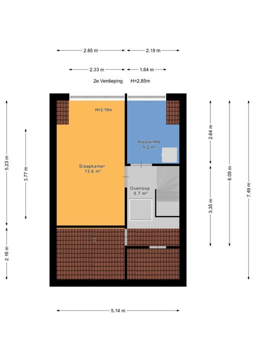 - Ruime zolderverdieping met aan de achterzijde een dakkapel over de gehele breedte van de woning.