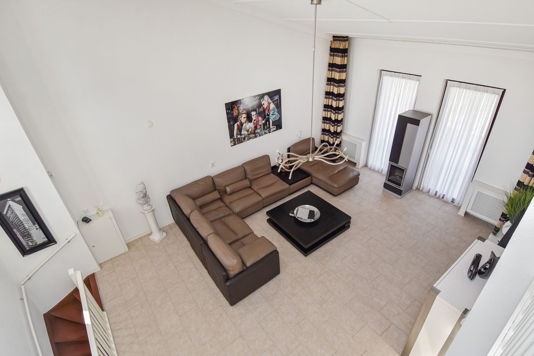 An open staircase in the living room leads to the spacious mezzanine: a multifunctional area that can be adapted to your needs. Ideal as a: