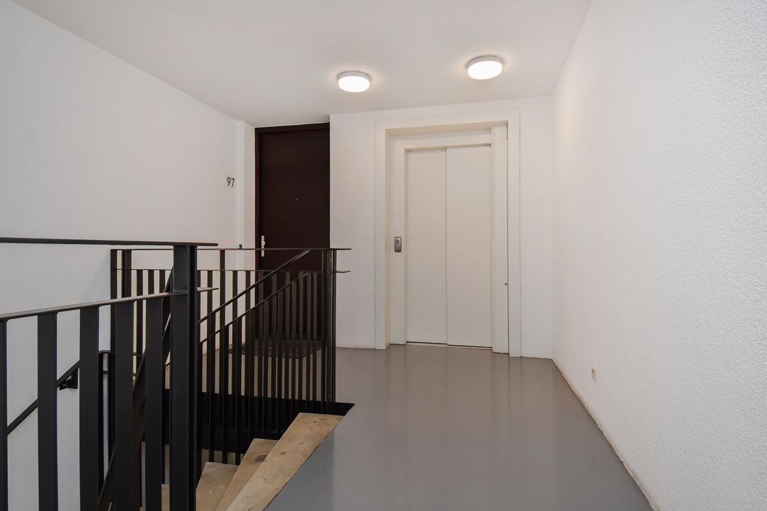 Secure central entrance with mailboxes, intercom, lift and access to the parking garage. The property includes a private parking space directly next to the stairwell. A second parking space is available for purchase for € 22,500. There is also a private storage room.