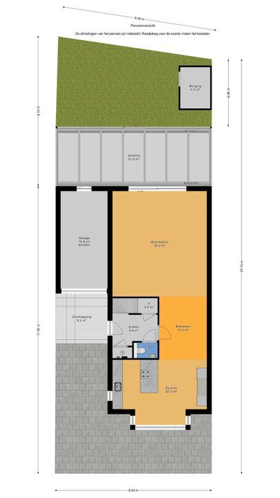 - Zonnige achtertuin van circa 8.30m x 9.40m op het zuiden met achterom via de garage en achterpoort