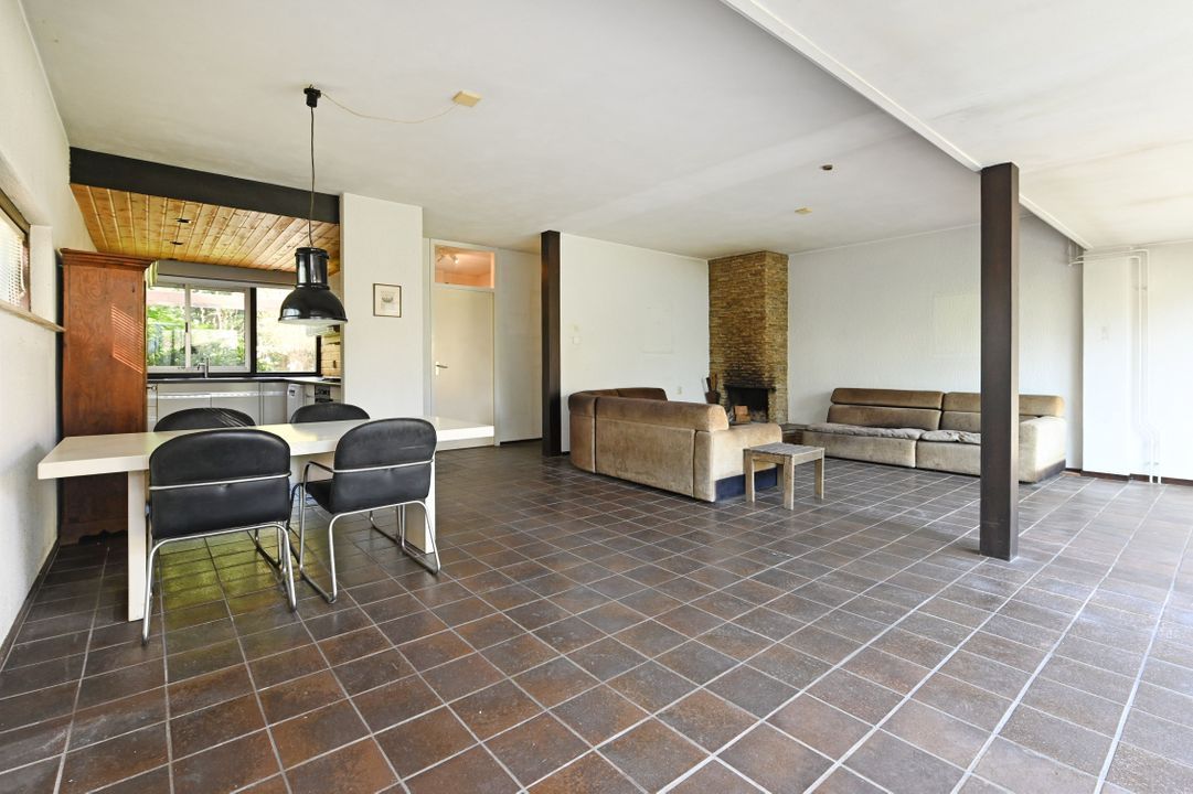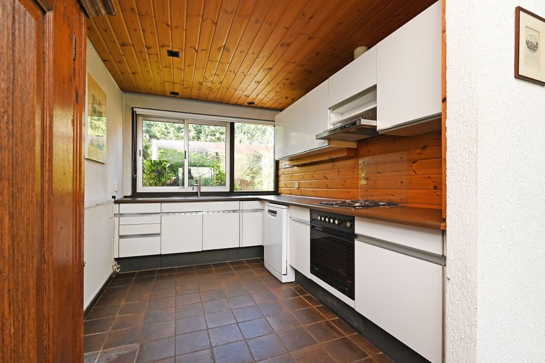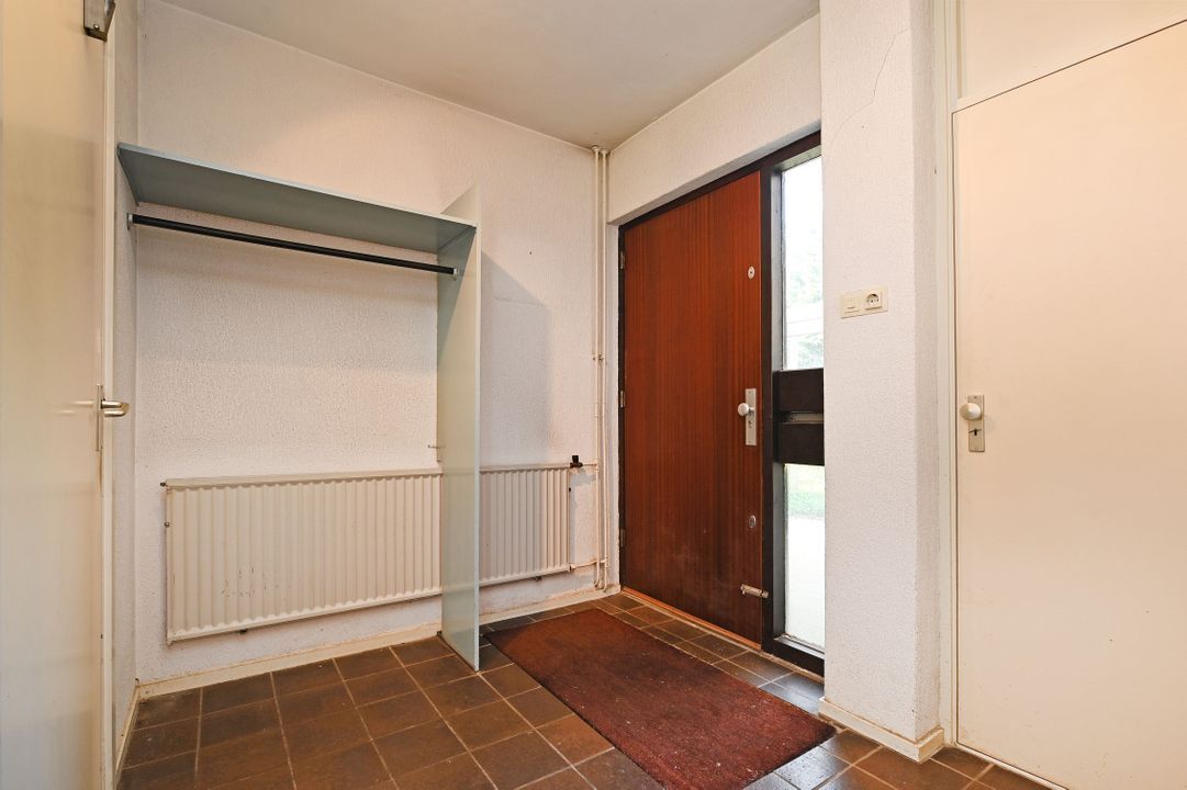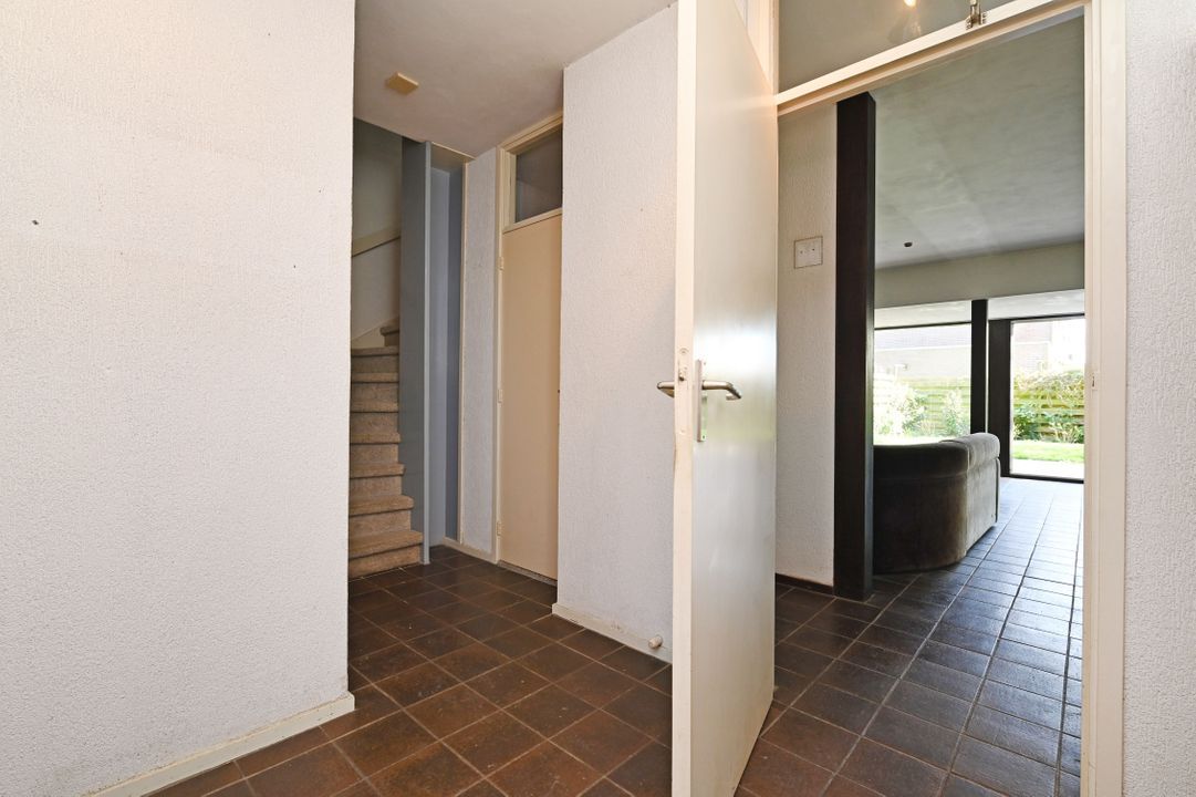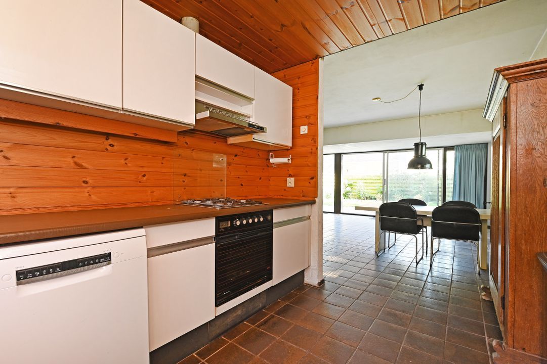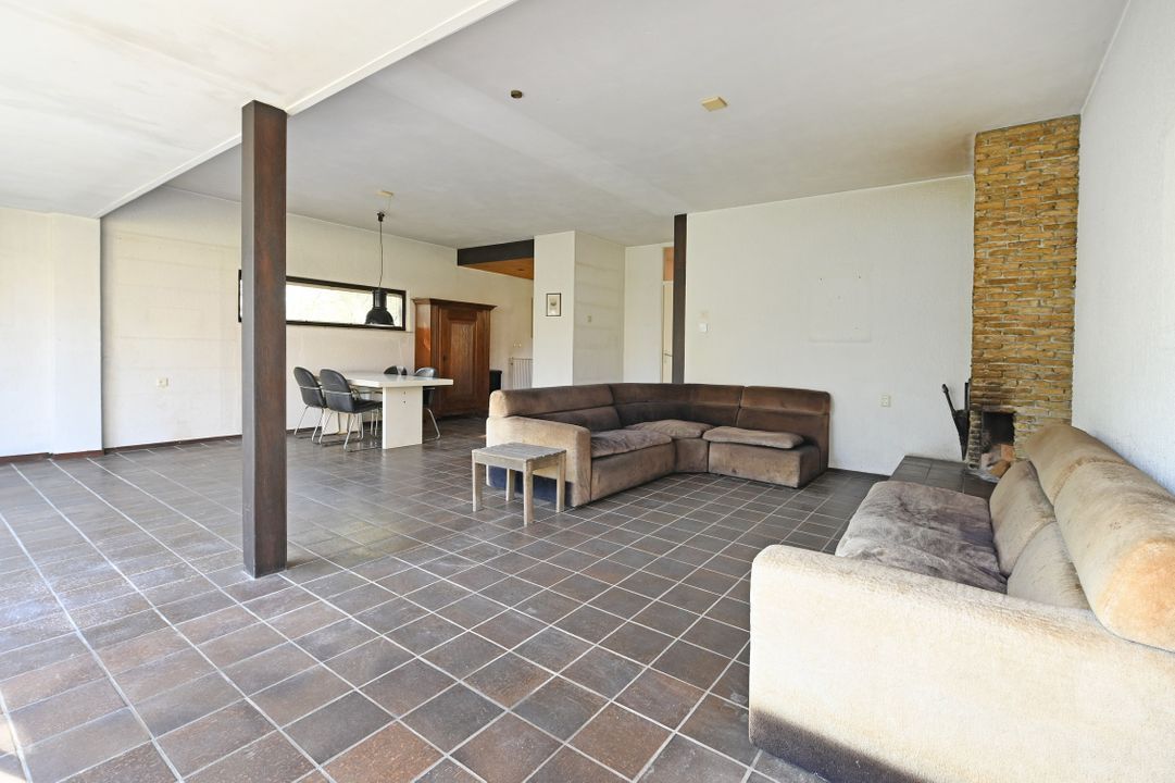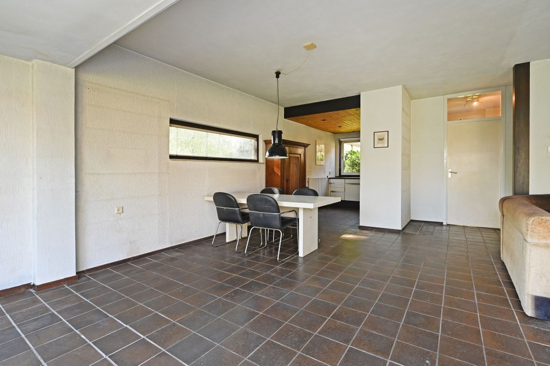 Via de voortuin kom je bij de entree van de woning. Hal met garderobe, meterkast en vaste trapopgang. Lichte, half betegelde toiletruimte met toilet en fonteintje. Binnendeur naar aangebouwde garage met elektra en luik naar bergvliering. Ruim 7 meter brede woonkamer voorzien van plavuizenvloer, 2 meter uitbouw, open haard, zijraam, convectorput en aluminium schuifpui naar zonnige achtertuin. Aan de voorzijde ligt de standaard hoekkeuken voorzien van dubbele spoelbak, vaatwasser, 4-pits gaskookplaat, afzuigkap en oven.