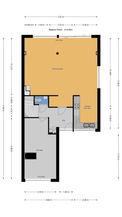 - Aan de achterzijde van de woonkamer is een gevelbrede uitbouw van 2 meter geplaatst