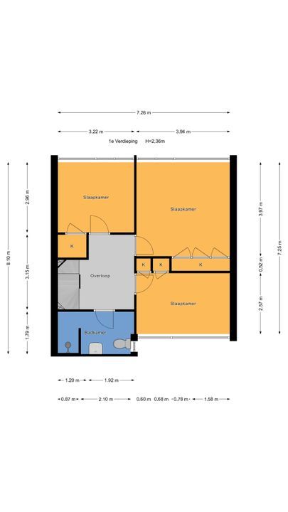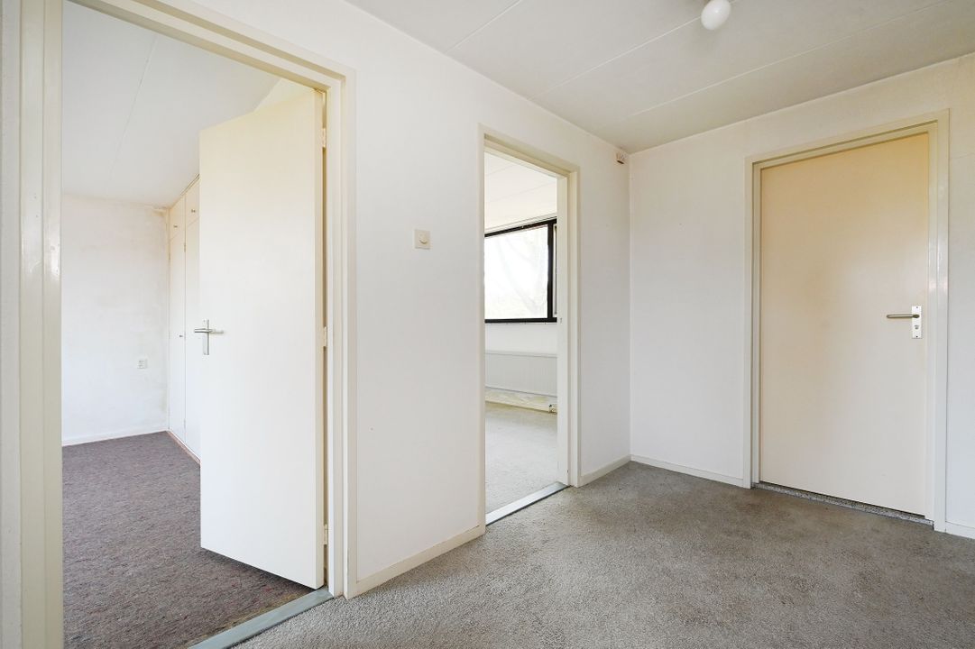 Ruime overloop met vaste trapopgang. Voorslaapkamer met vaste kast. Standaard badkamer voorzien van toilet, wastafel, inloopdouche, zijraam en opstelplaats voor wasmachine en droger. 2 achterslaapkamers, beide met vaste kasten